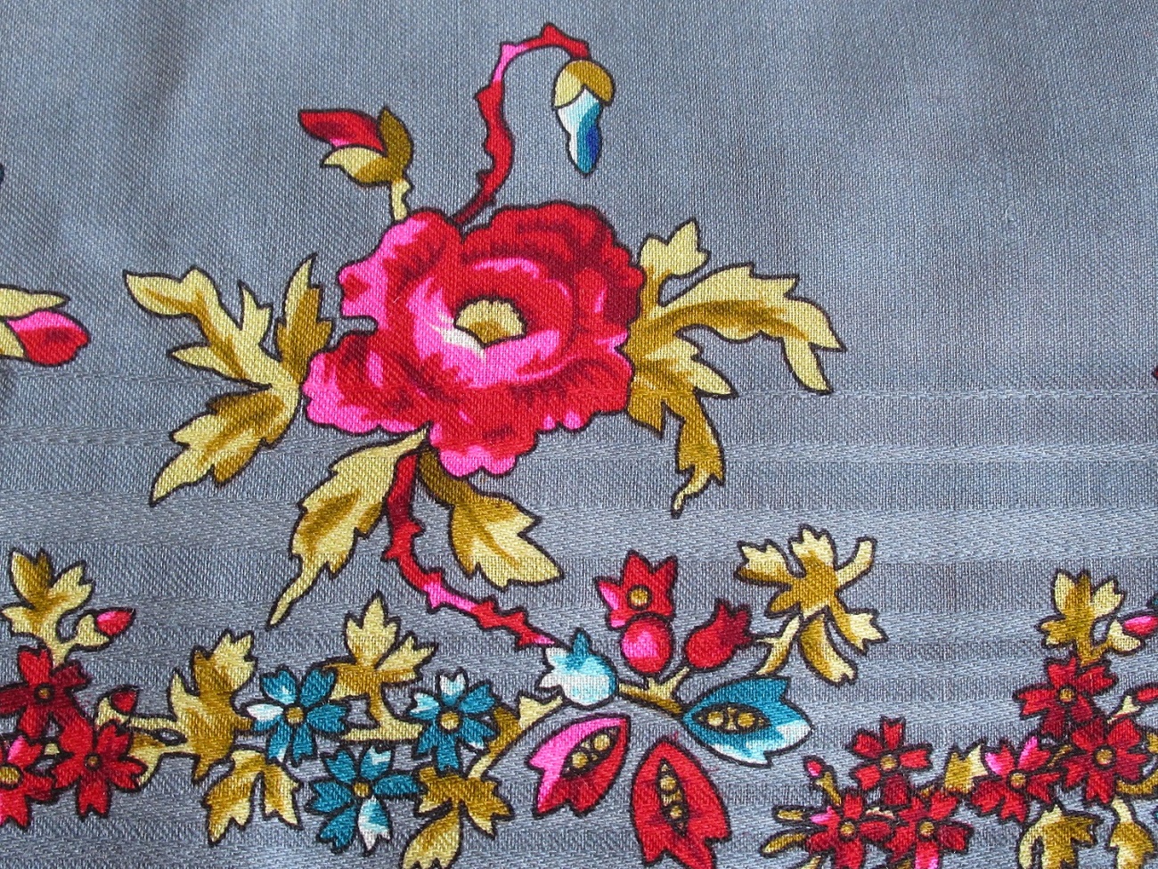 Мне тоже повезло. Есть в нашем городе магазин народных промыслов. Захожу туда посмотреть на керамику. Продают там и наши платочки из текущего ассортимента ППМ, только по высоким ценам, ничего особенного. А тут я смотрю и глазам своим не верю. Лежит у них новенький, с этикеткой Праздник Покрова 9 отличной яркой печати. Забрала себе.