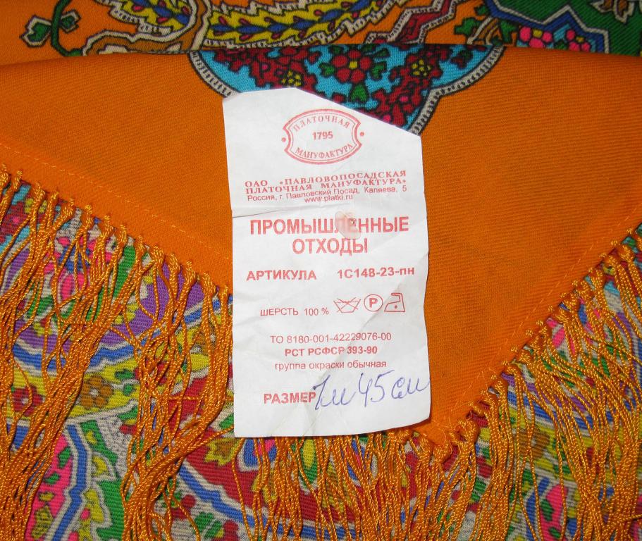 Я его видела живьем, бабушке по фото понравился, ну я и полетела. Плат с небольшими дырочками в разных местах, насчитала штук 5, бросила... и вернула продавцу, одна была аж больше сантиметра. Да еще + инициалы владельца вышиты в углу шали нитками в несколько сложений - если отпороть, будут дырочки. Продавец интересная дама. Все говорила, что внимательно рассмотреть платок у нее времени не хватило.