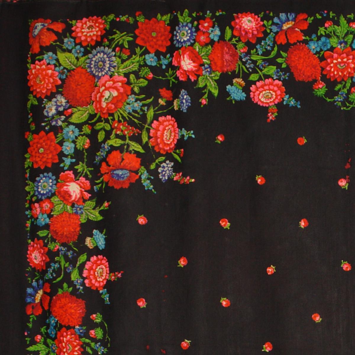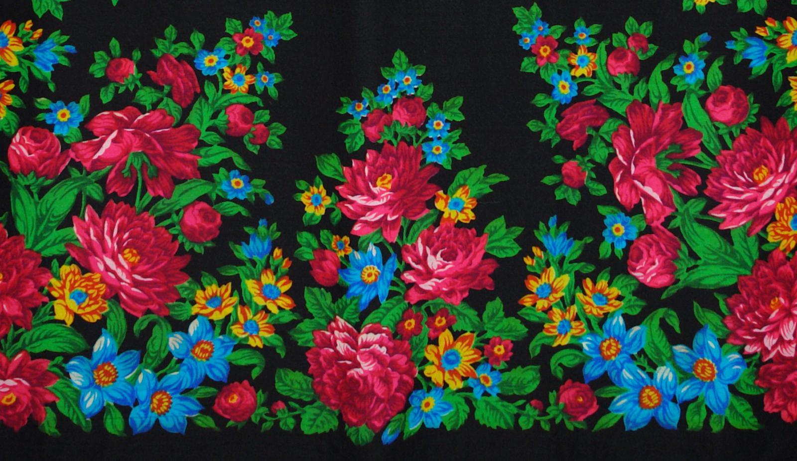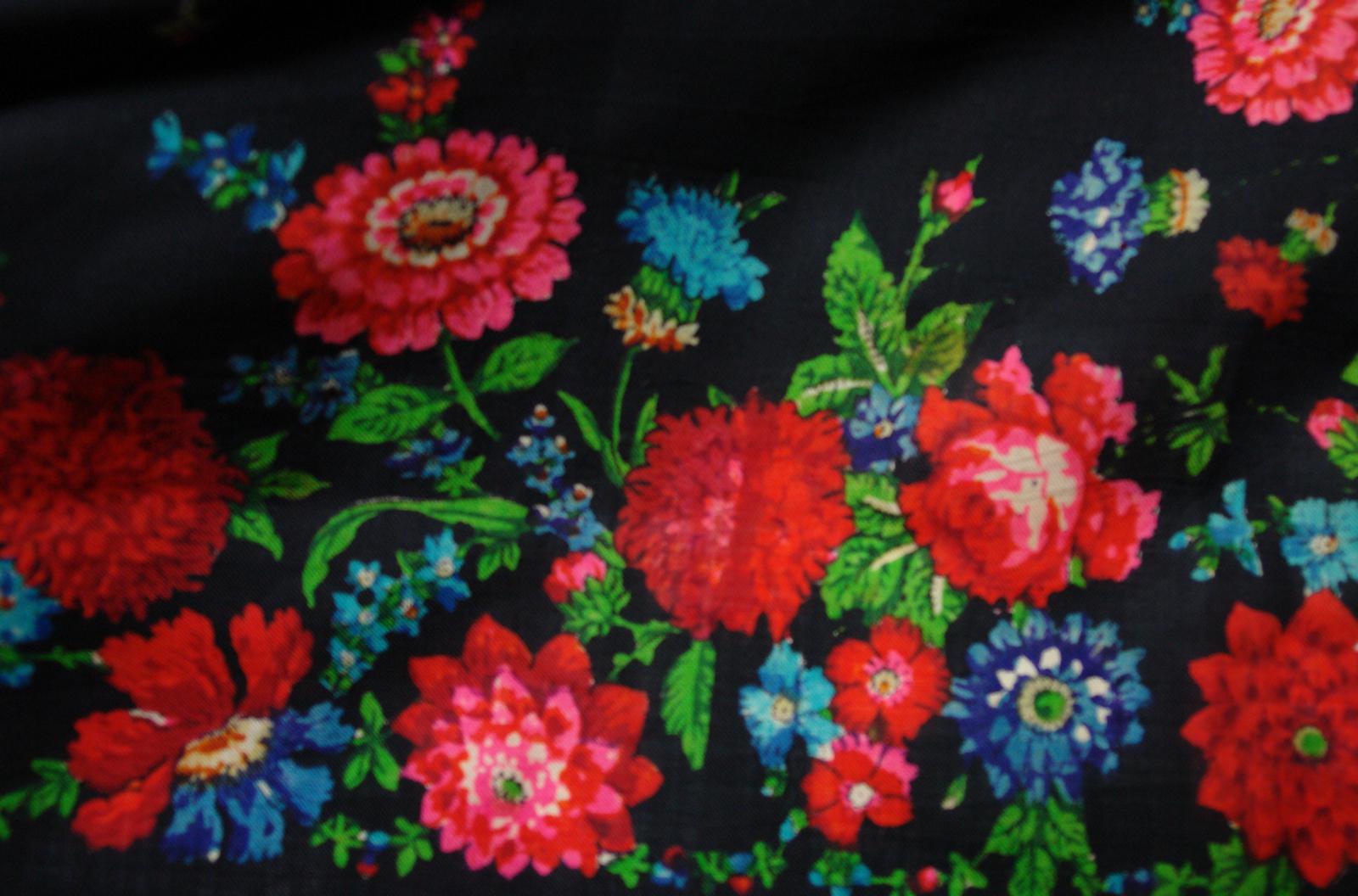 Шаль довоенной ручной набойки с цветочным мотивом по кайме