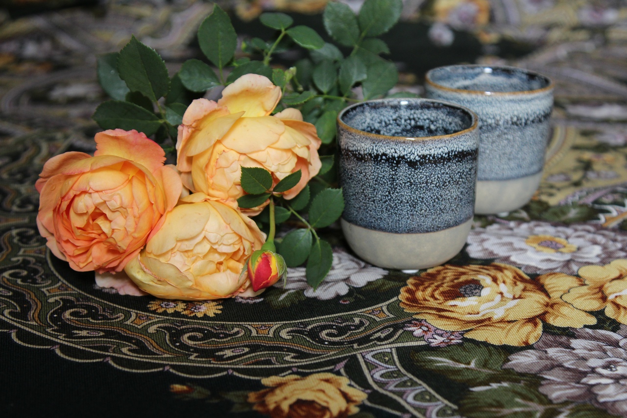 Но мы из гжели чай не пьём по причине специфического восприятия напитков - много лет были под влиянием восточных традиций чаепития: китайской, отчасти японской. От этих влияний осталась привычка пить хороший чай, чаще всего "проливая" несколько раз (от 2 до 12), малыми порциями с добавками. И заваренный с травами чёрный чай мы так пьём - малыми порциями, доливая, хотя и дольше настаивая. Чашки чайные используем более, скажем так, пиаловидные, в разных вариантах (турецкий чай - особая статья, тоже свой способ приготавливать и пить). Гжель - это другая эстетика - тут надо доверху!)) А "доверху" - это в моём восприятии про кофе, компот и прочий квас. Вот умеренного или небольшого объёма гжель для хорошего полновесного кофе с молоком используем, но не для "маленького крепкого".