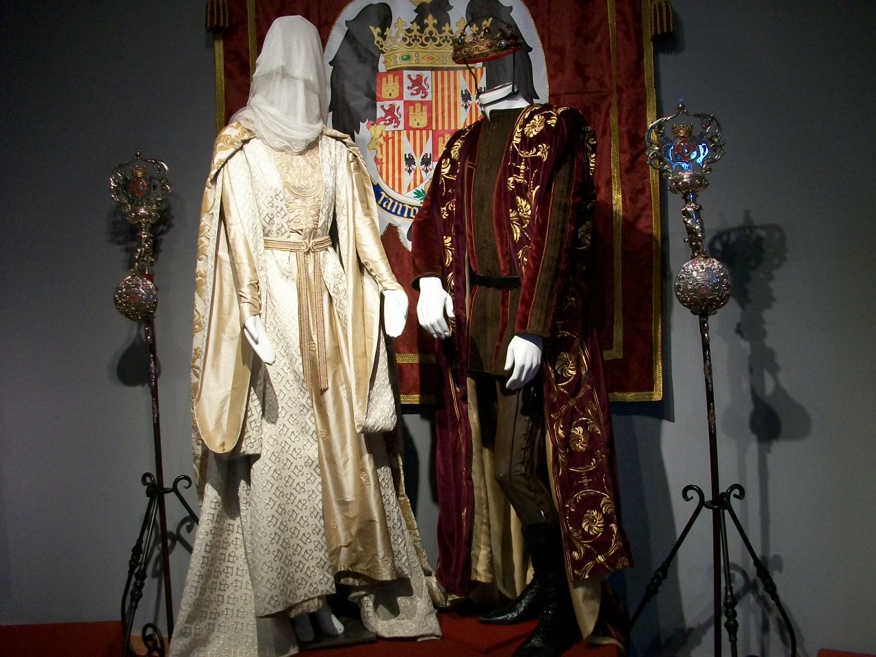 Исторические костюмы времен королевы Изабеллы католической в старинном дворце.
