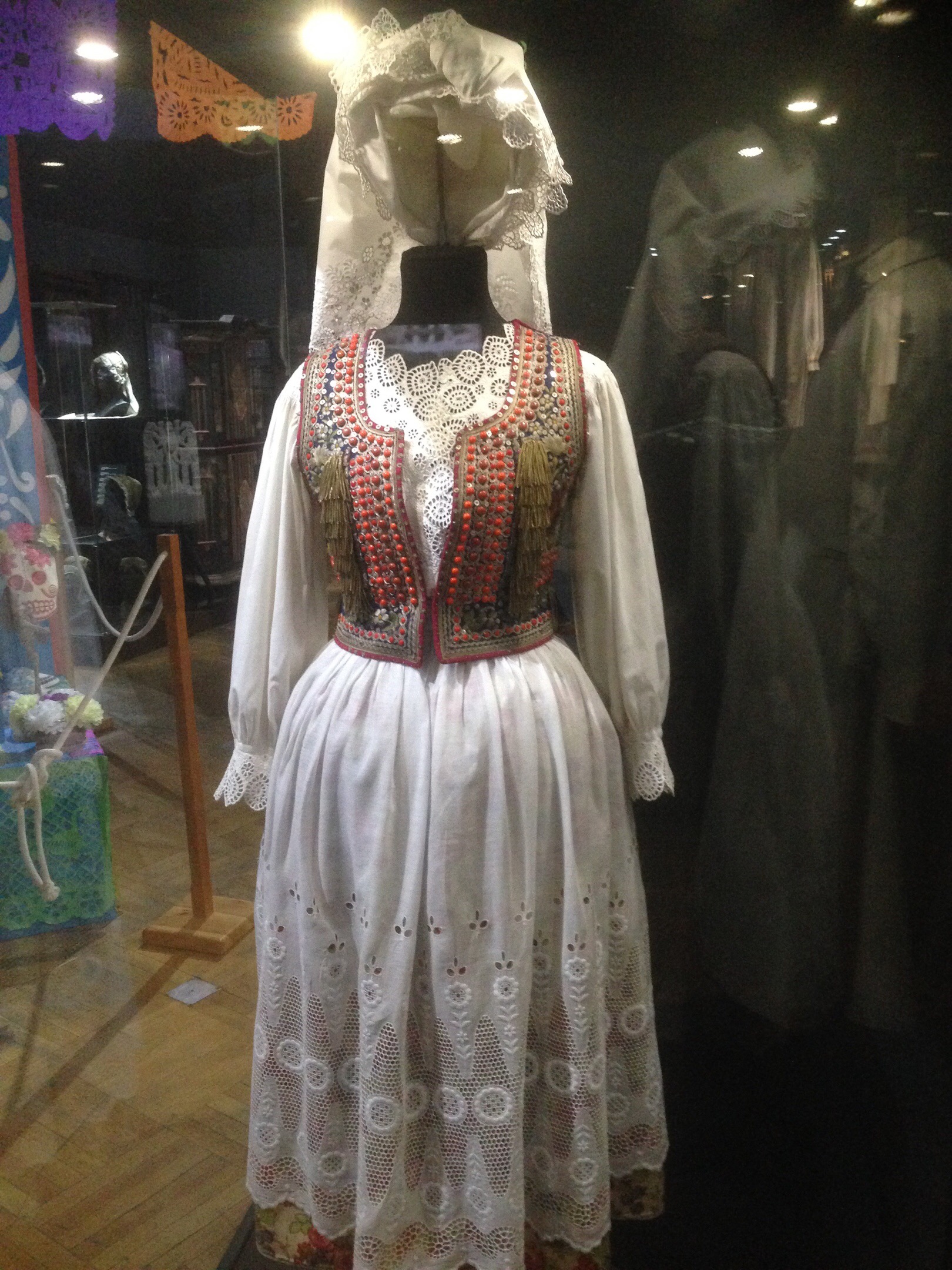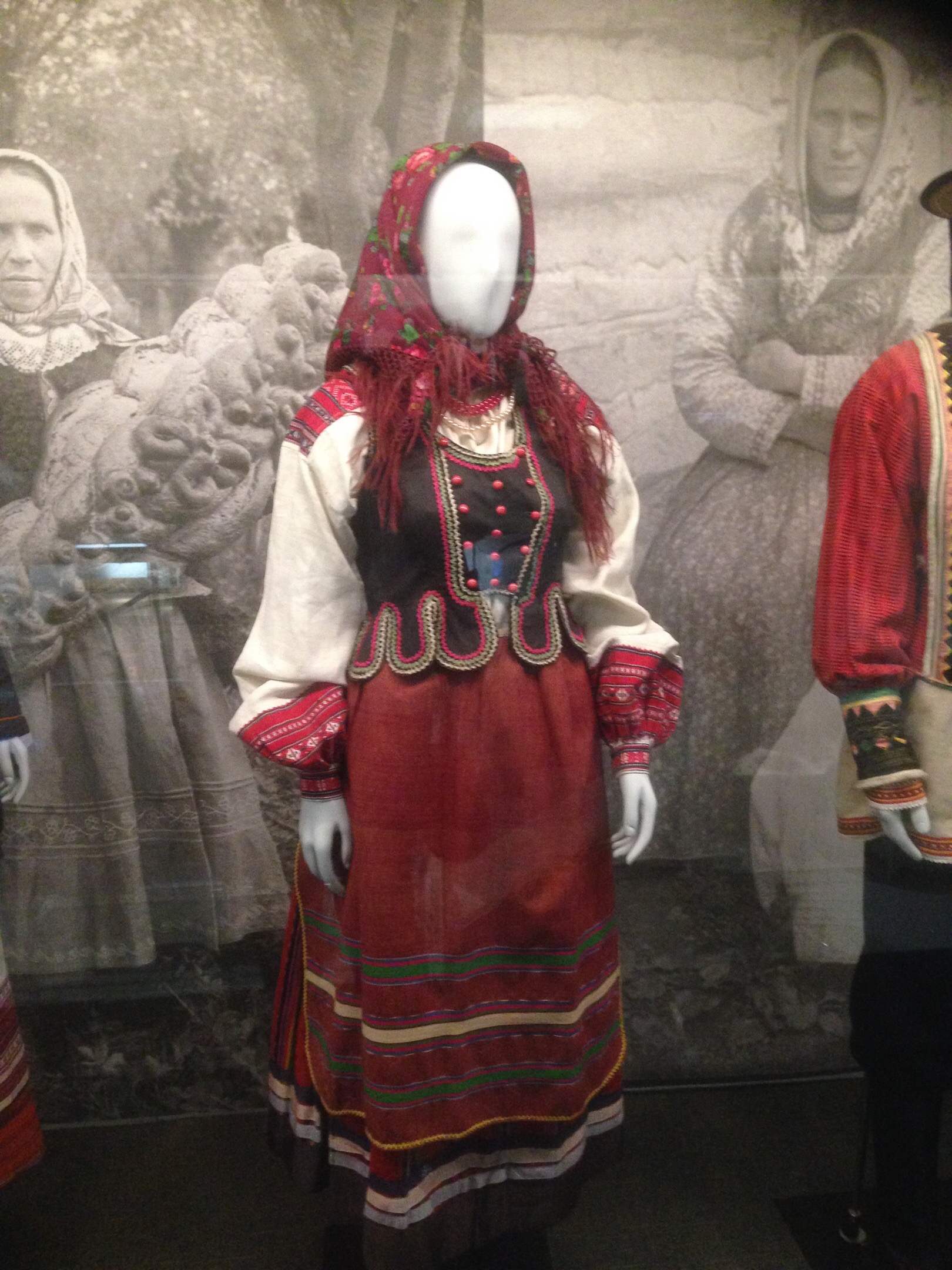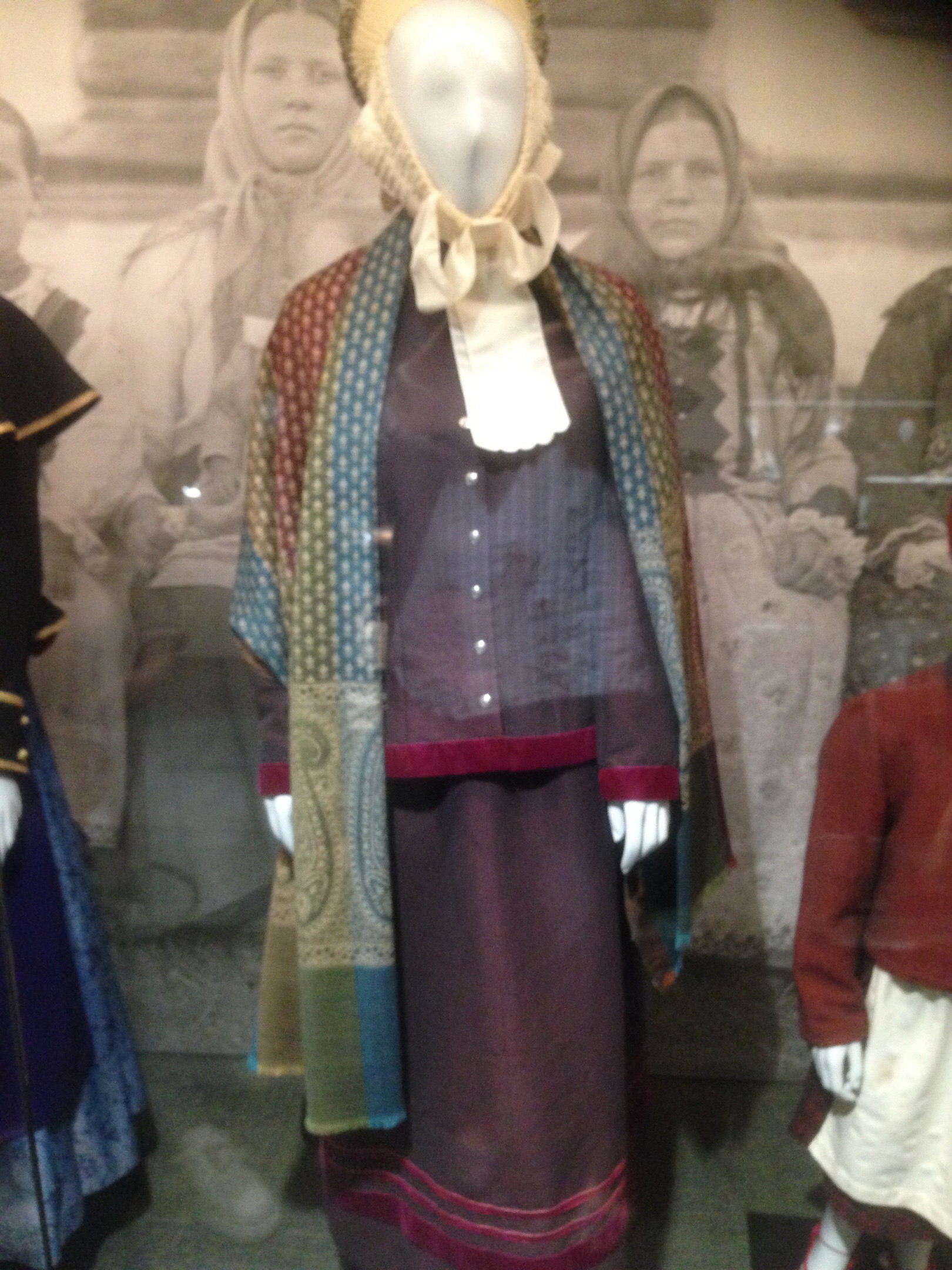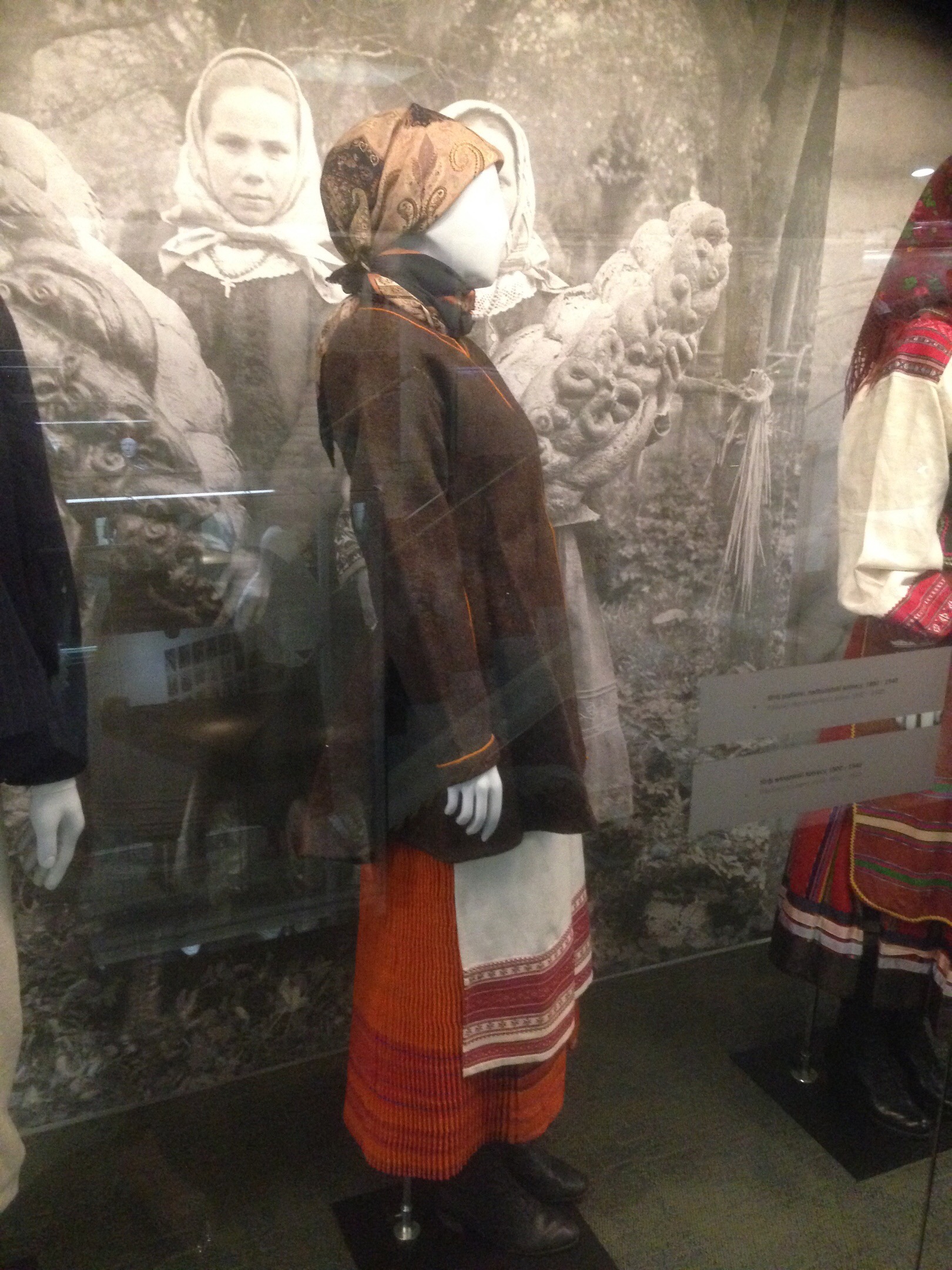 И ещё немного. Этот экспонат- национальный русский костюм женщины Воронежской губернии ( реконструкция или настоящий, не берусь судить, а спросить было не у кого. Платок - оригинал?)