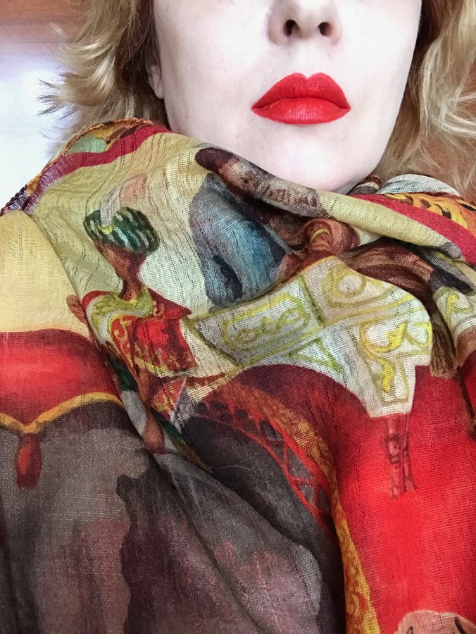 И "старинка" для любителей фуксии ( и в платках в том числе): нежно-розовая фуксия YSL,помада для губ ROUGE VOLUPTE, номер 10 ( снята с производства, но еще можно встретить в магазинах).