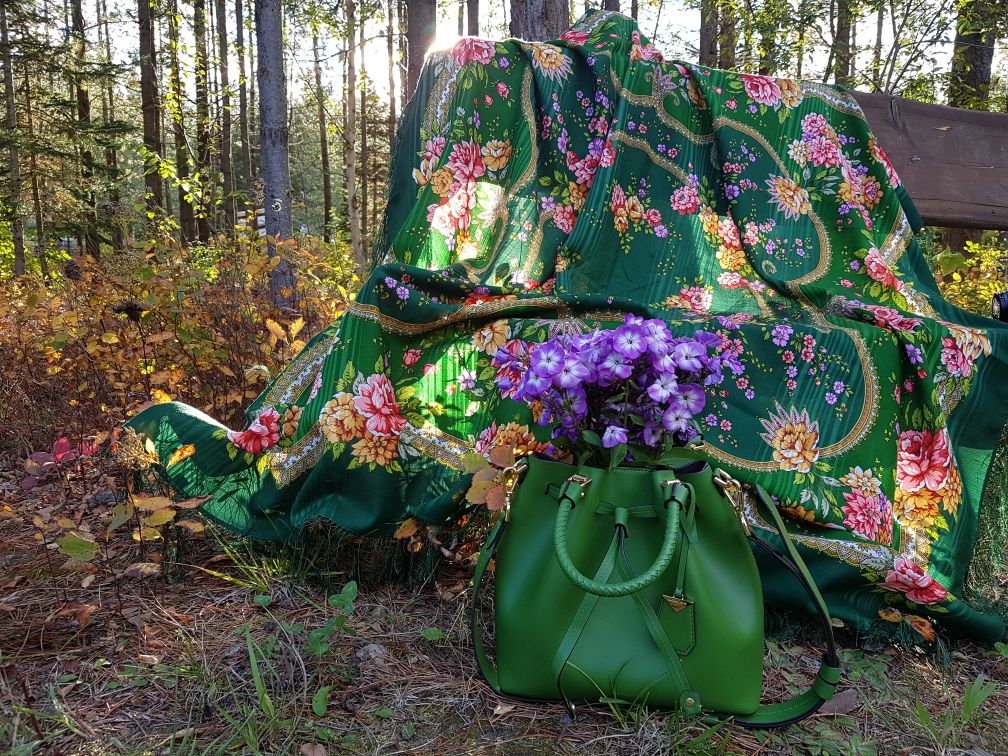 сестричка Аленушка, по цвету сошлось, я даже не сразу поняла, что это Драгоценная, думала Волшебный узор мятный. теперь к этой паре - шаль+сумка - практически все что угодно можно надеть и будет стильно смотреться)))).