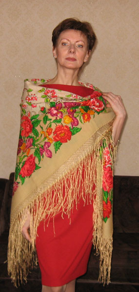 А здесь оживляш традиционный - шалями. Из имеющихся у меня более-менее подходят три.