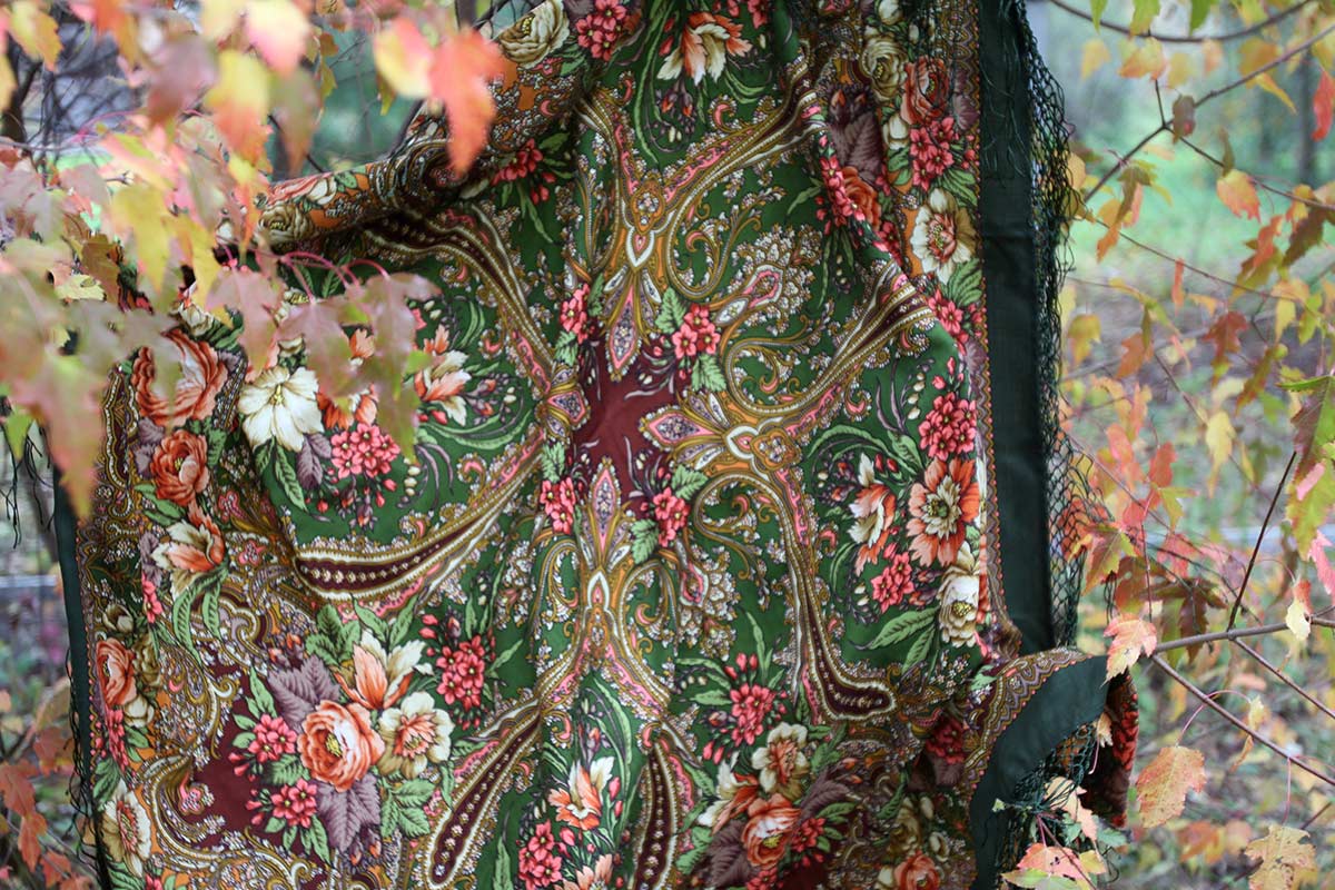 До личного знакомства с платком думала, что он очень похож на Остановись, мгновенье 14. Остановись, мгновенье есть, значит этот нет смысла покупать. Но он оказался совершенно другим, тональность другая, настроение другое, очень красивый фиолетовый цвет, которого нет в Остановись, мгновенье.