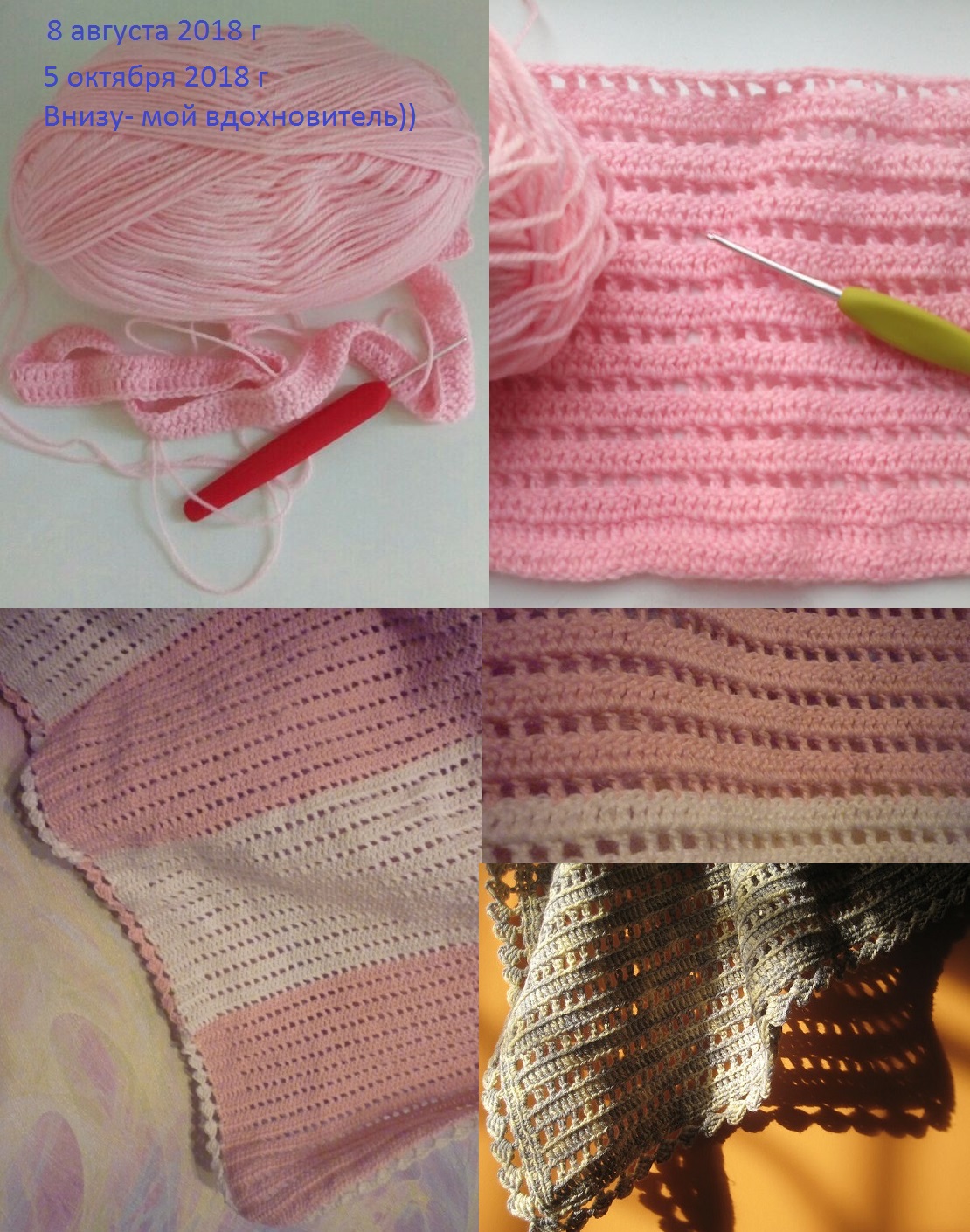 очень -очень много лет назад на ЯМе встретился мне этот плед. Я даже нитки купила. Но что-то пошло не так :lol: И только сейчас я вдохновилась. Ниток не хватило, такого розового цвета уже не было, пришлось фантазировать