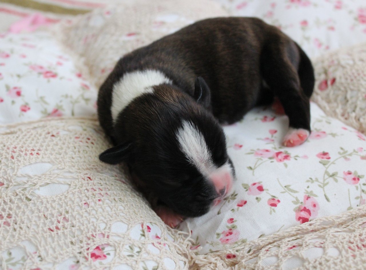 Ватсон благоразумно прилип к батарее на кухне, подглядывает в "детскую" только в щелочку и иногда подслушивает )) Тильда его гоняет , пока щенки совсем маленькие. Зато, когда детишки начинают носиться табуном - Тильда только рада, что их внимание хоть кто то отвлекает, замотанная многодетная мать не справляется с активностью собственных чадушек ))
