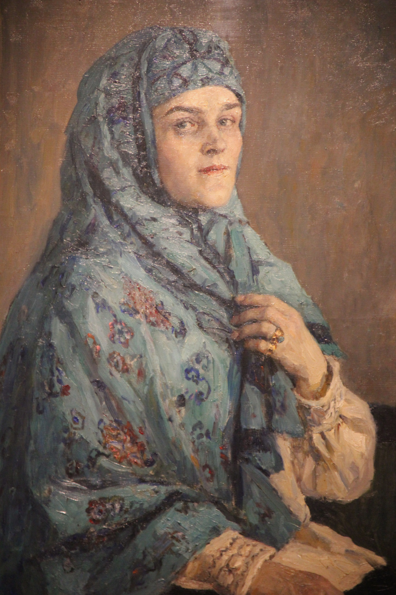 Это портрет княгини Полины Щербатовой в индийской шали. Той самой, чей портрет писал в самом конце своей жизни Валентин Серов, да так и не успел.
