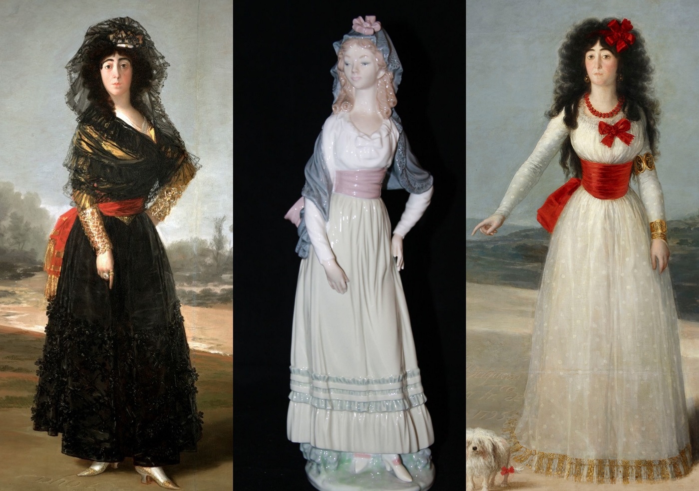 MLA, мне вообще-то вспомнился другой портрет 13-й герцогини Альба, тоже кисти Гойи – «Белая герцогиня» 1795 г. А теперь вижу, что в статуэтке есть что-то от каждого портрета. От дамы в черном – поза и мантилья, от Каэтаны в белом – субтильная фигурка, цвет и фасон платья, пояс, бант на груди, цветок на голове.