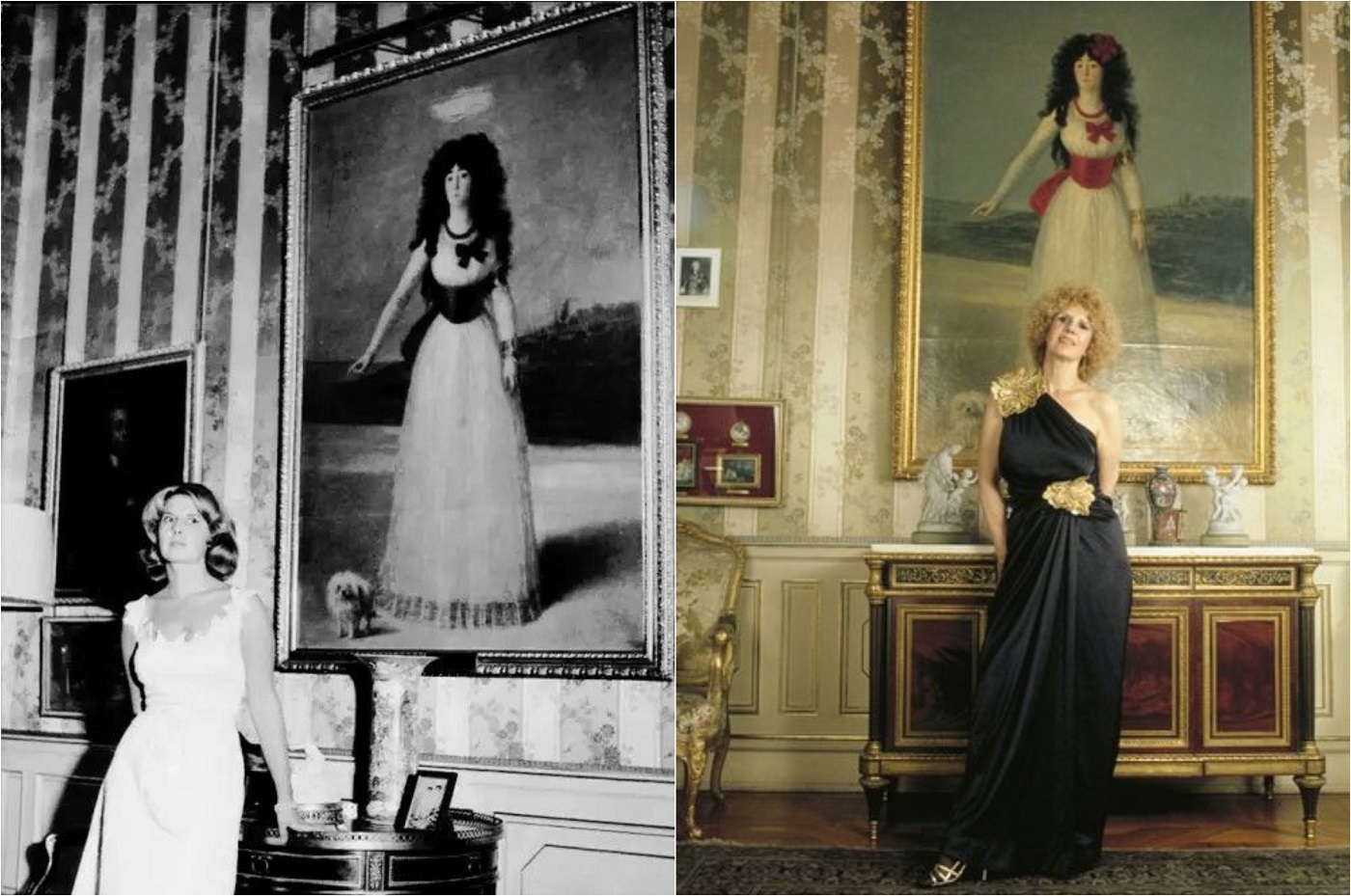 Кстати, портрет Белой герцогини находится в мадридской резиденции герцогов Альба, дворце Лирия, и Каэтана постоянно, с юности и до глубокой старости фотографировалась на фоне своей прапра…бабки, в сети масса фото, например: