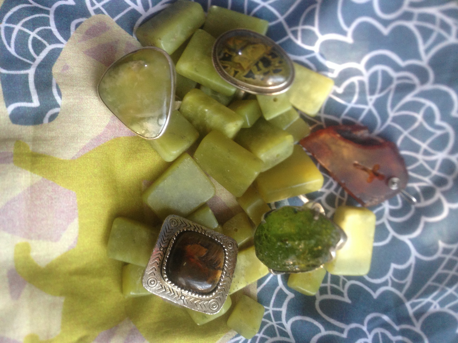 Ноябрьский свет не позволяет хорошо фотографировать. Самоцветы-любовь моя... Серьги- бабочки из кристалллов Сваровски. Золотые "бляшки" и сапфиром. Сапфиры с лунным камнем и жемчугом. Дымчатый кварц. Зелёные, по-моему, нефрит. Кулоны- ляпис лазури и Петерсит.