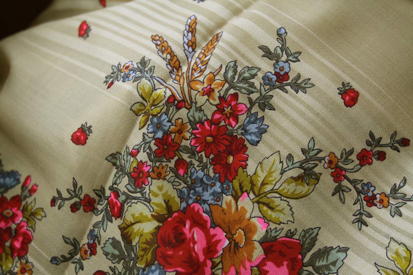 Жалко, если платки с просновками уйдут и их больше не будут выпускать. Есть особая красота в этой незаполненности поля рисунком, особенно в свете современных тенденций фабрики заполнить все поле мелкой вязью, в игре просновок. А какая была ткань, мягкая, шелковистая.