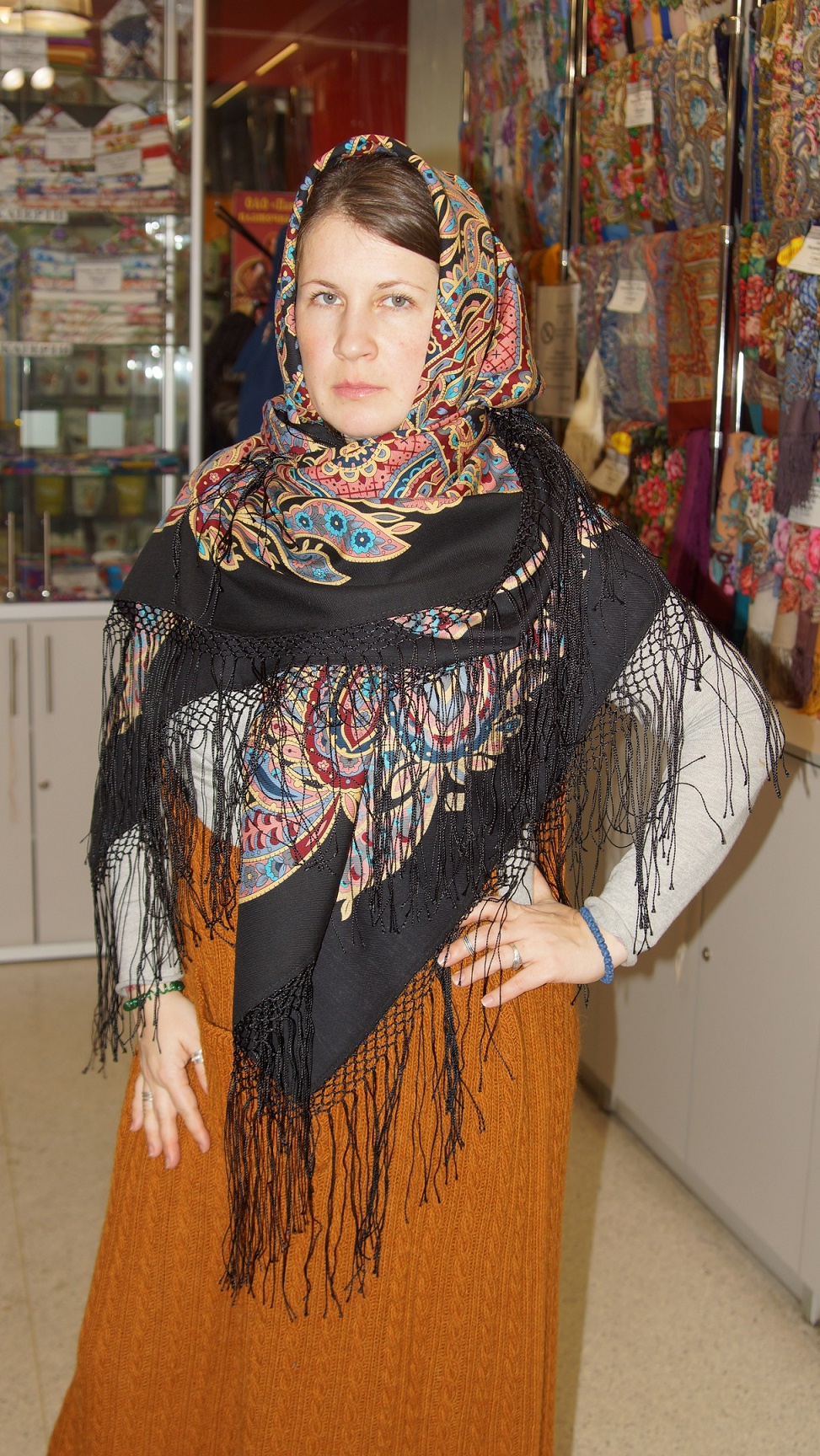 Шаль понравилась, такая мрачнушка, не украшает особо, но что -то в ней есть.