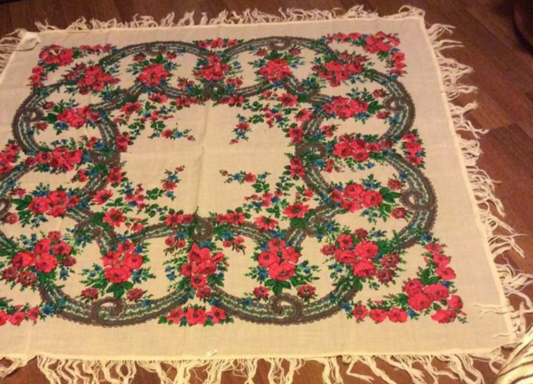 Вчера листала Авито и наткнулась на шаль,я к сожалению, ещё не опытный платочник поэтому пока разбиралась что к чему,платочек уже был куплен.Вот в надежде,что кто-то из любительниц его приобрел и выложит фото пришла в эту тему.
