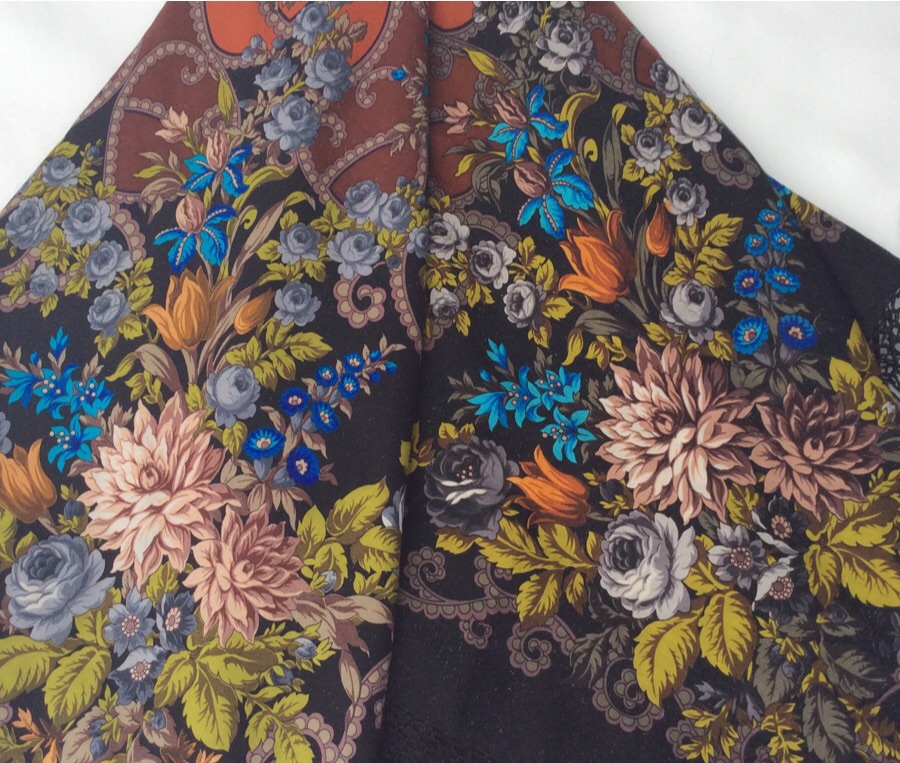 oksi, спасибо за сравнение Посадского. Мне по фотографиям показалось, отличается и бордовый цвет. На новой печати более рыжевато-коричневый. Мне первая печать больше понравилась, на мой взгляд, сероватые цветы более перламутровые и как будто четче. Единственное, более темный цвет синего в медальенах кажется мне красивее. Применительно к себе, возможно второй вариант мне был бы более лучше к лицу, но мне достался первый. И я этому рада.