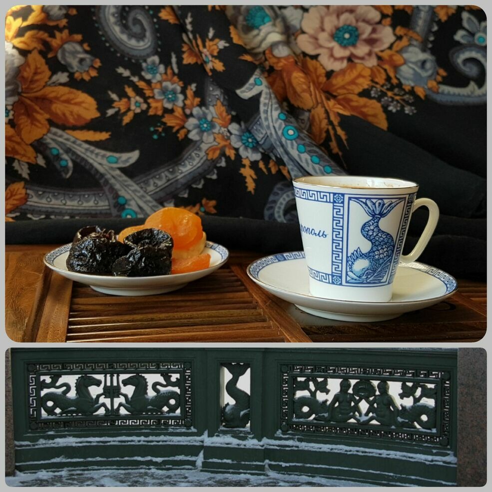Маленькая кофейная пара Петрополь ИФЗ. Дельфинчик - элемент декора перил Аничкова моста.