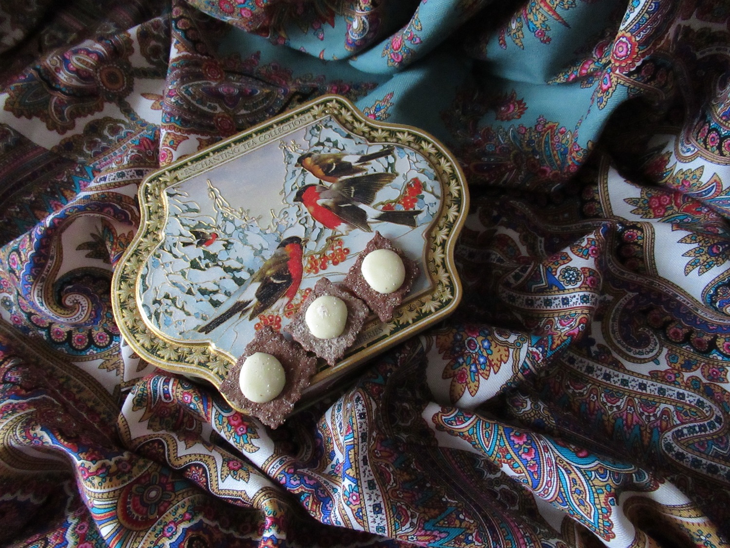 Прекрасно, что присоединились к теме! И так удачно! И красиво. Синий Ларец самоцветный, конечно же, очень-очень декабрьский платок. Тем более, с рождественским антуражем.