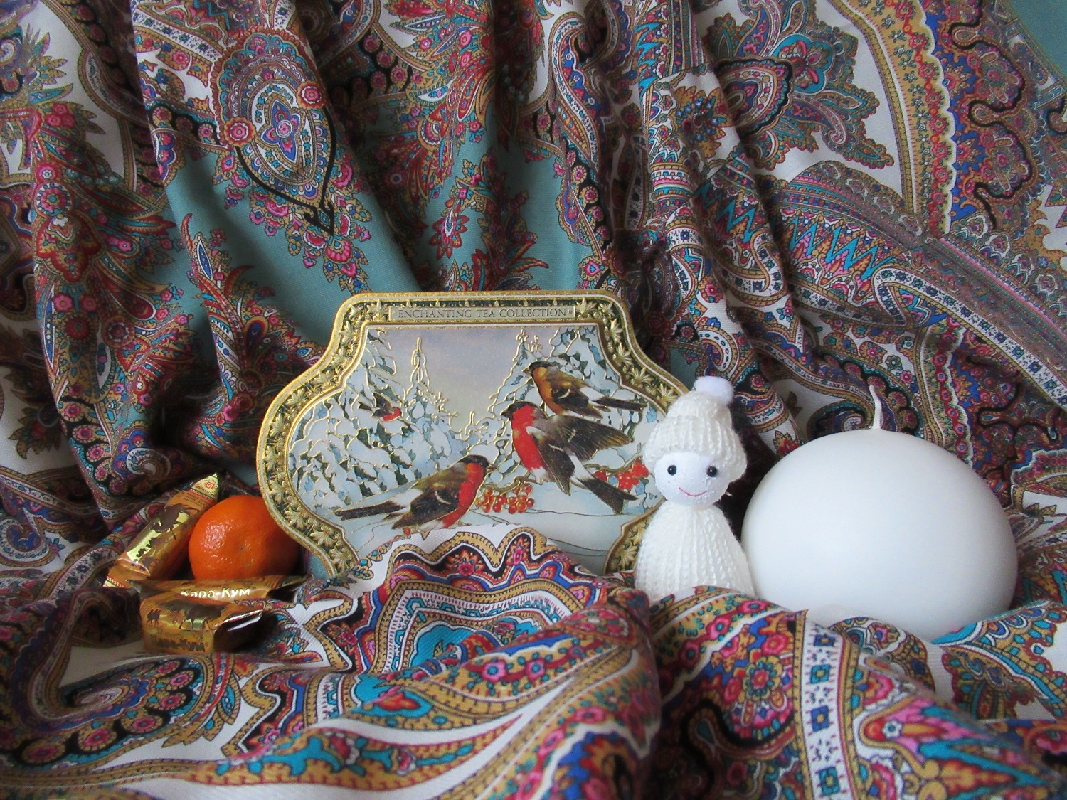 Прекрасно, что присоединились к теме! И так удачно! И красиво. Синий Ларец самоцветный, конечно же, очень-очень декабрьский платок. Тем более, с рождественским антуражем.
