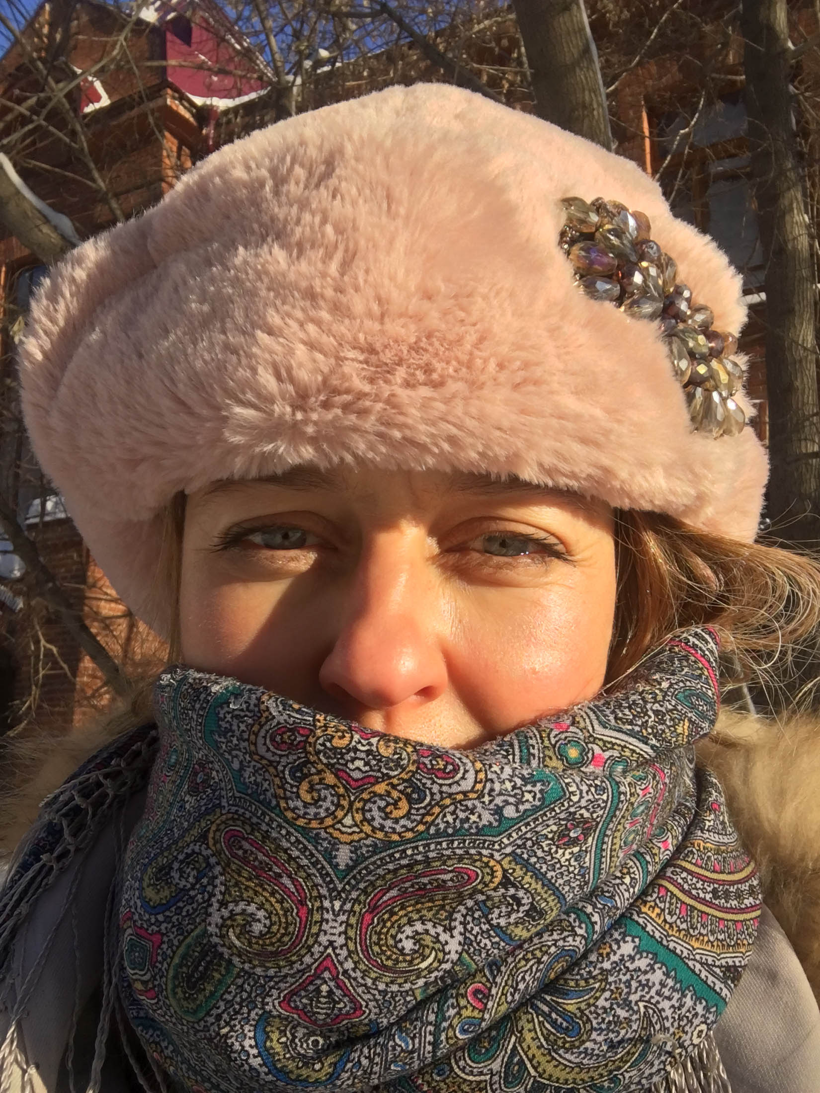 Во-первых, была приобретена новая шапка из чебурашки и бриллиантов. Удачный взрослый розовый цвет. Дружит и с цветами, и с огурцами.