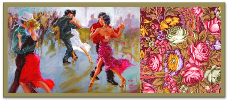 Пышные букеты роз на павловских платках.