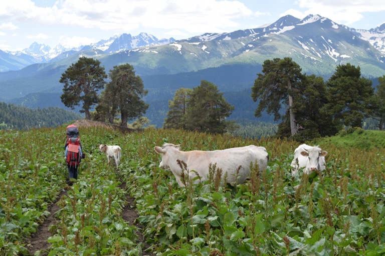О, коровки горные появились. Мне всегда смешно на них смотреть. Такие маленькие, как собаки. Не то что наши - идет такая "баржа", боками и рогами покачивает :).