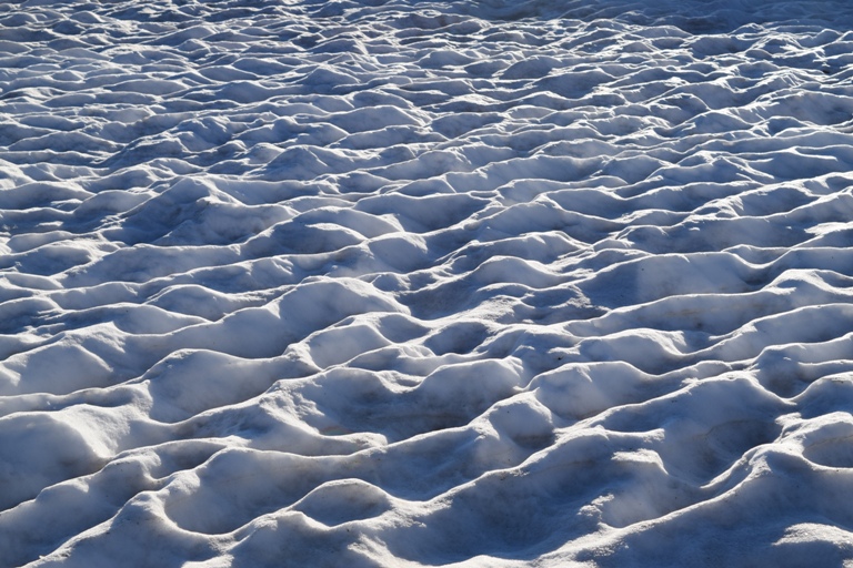 в большие походы я ходила три раза в мае, в последние десятилетия май - это конец зимы на Кавказе, то есть весна всё более холодная становится; снега очень много, он тает, иногда по нему, чтобы не проваливаться по грудь с тяжеленным рюкзаком, ползали (щелкнуть по первому фото). Поэтому лучше всего выходить из лагеря на тропу часов в 5 утра, ближе к обеду - увязнешь.