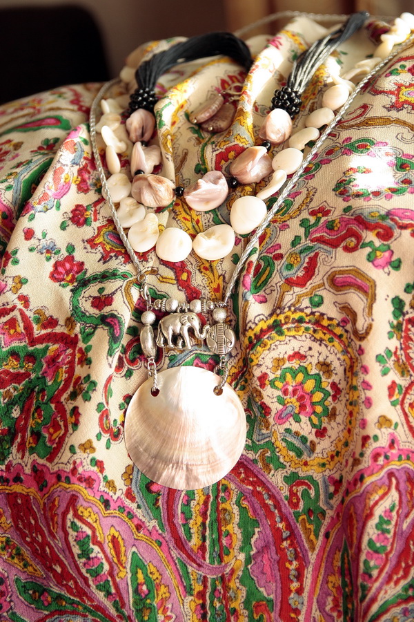 Естественные, перламутровые краски и у Каравана ручной набойки.