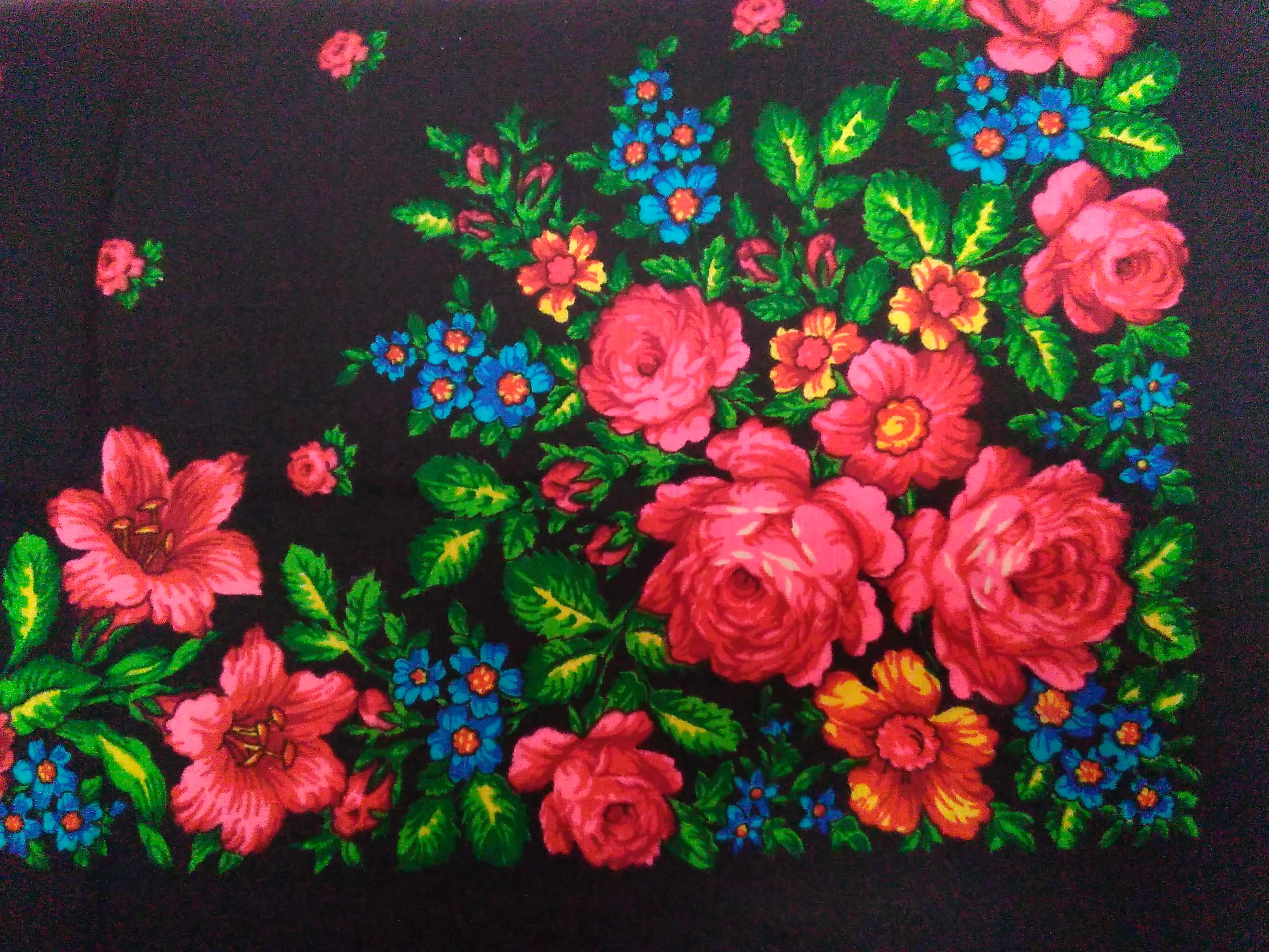 Это сестренка мне фото прислала. Мамины платки советских времен, более 40 лет их помню.Сомневаюсь на счет производителя.
