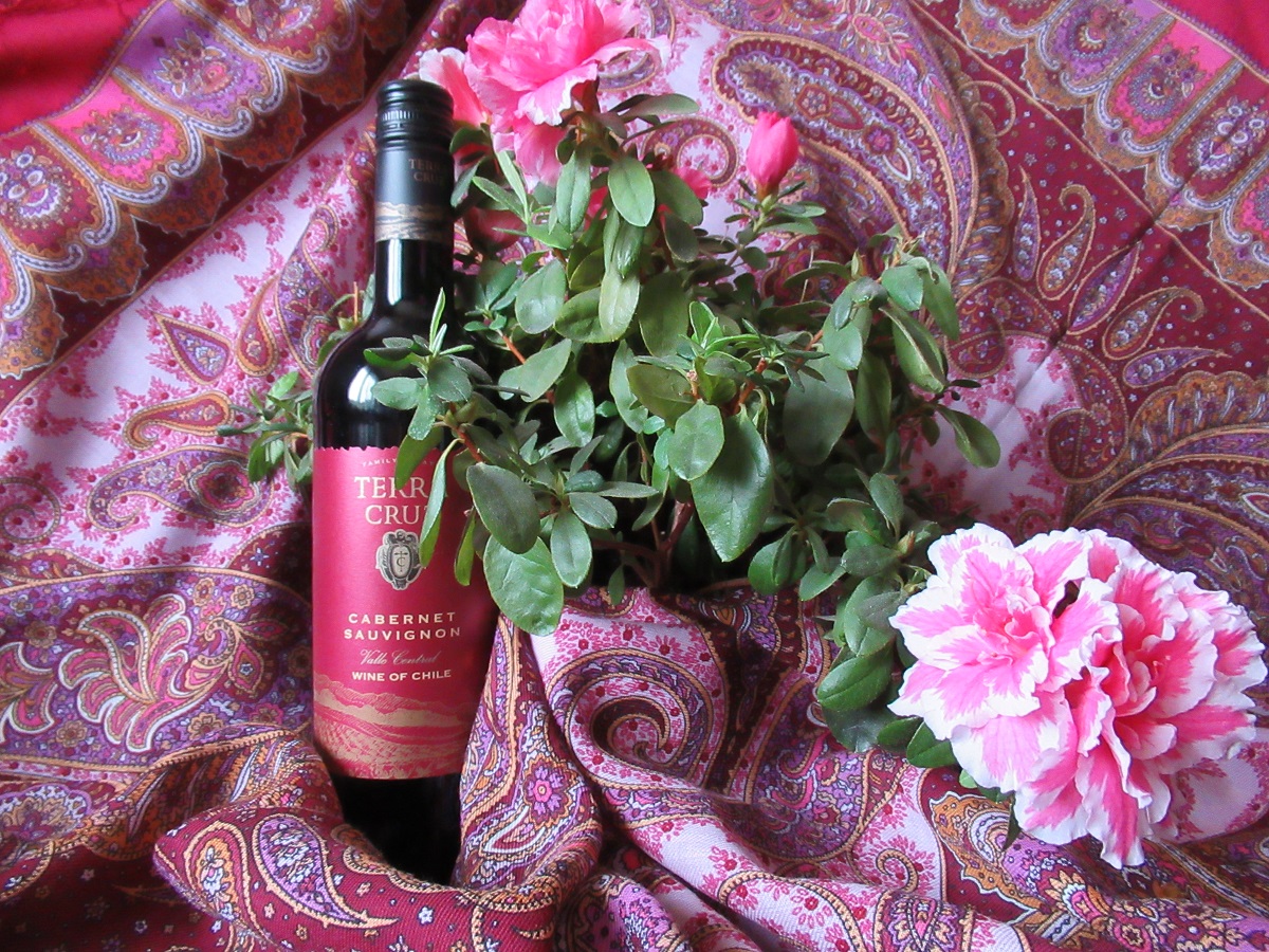 И так , Чилийское вино региона Central Valley - Terra Cruz Cabernet Sauvignon и платок Елены Жуковой Фаворит 6-ого колорита.