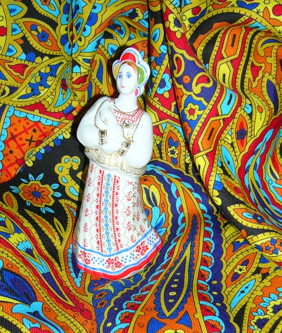 Старенькая малышка из трио подружек производства Южноуральского фарфорового завода и платочек Душистый луг 9 Натальи Белокур