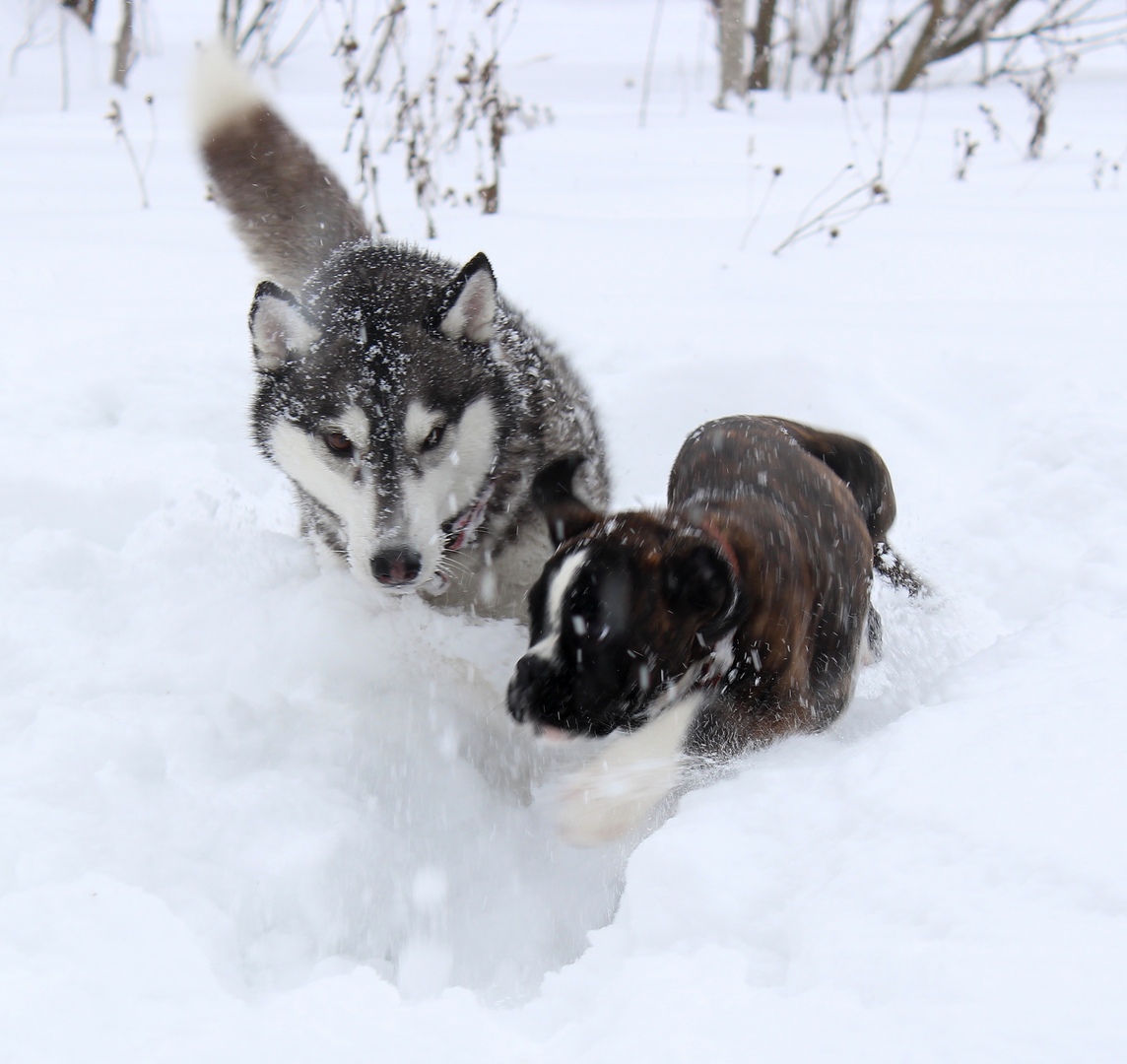 Марусиа, какая прелесть! Там, где бочком лезет, вообще как скульптурный ансамбль . Тибетские Мастифы - любовь моя, аж трое! И хаски с малышкой в снегу! Прямо с вами на прогулке побывала. Спасибо! ^%