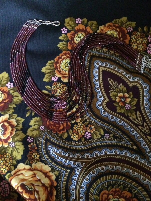 Нефрит+сердолик+стеклянные бусины лэмпворк ручной работы с платочком Вечерняя заря-19. Подходят почти ко всем мои платкам.