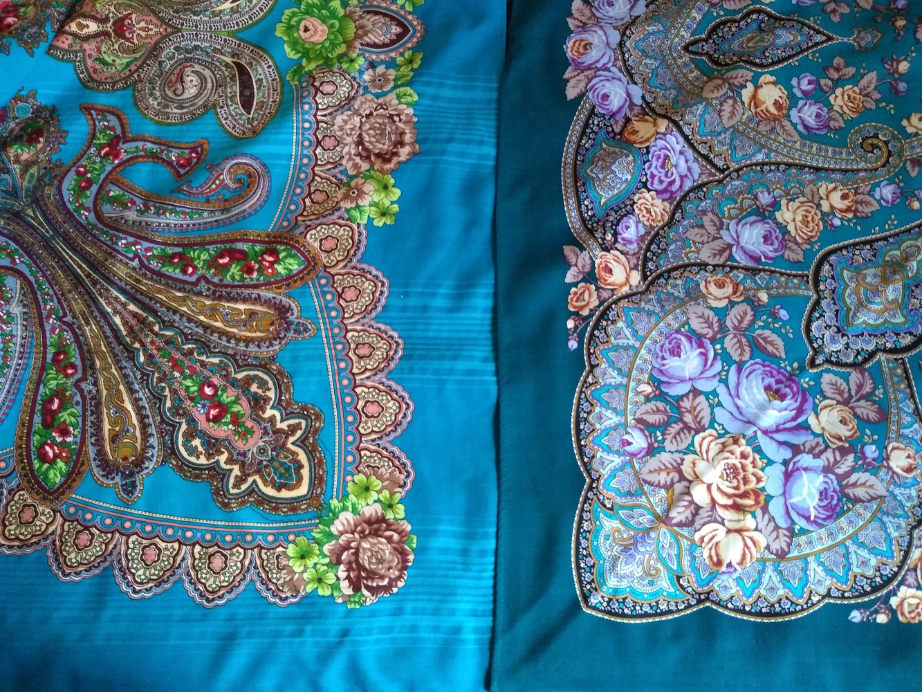 Наконец-то душа успокоилась бирюзой, хотя бы на время. Потому как купленный ещё на заре шалепомешательства плат Розовые дали-12 никак не носился. При всей моей любви к бирюзе.