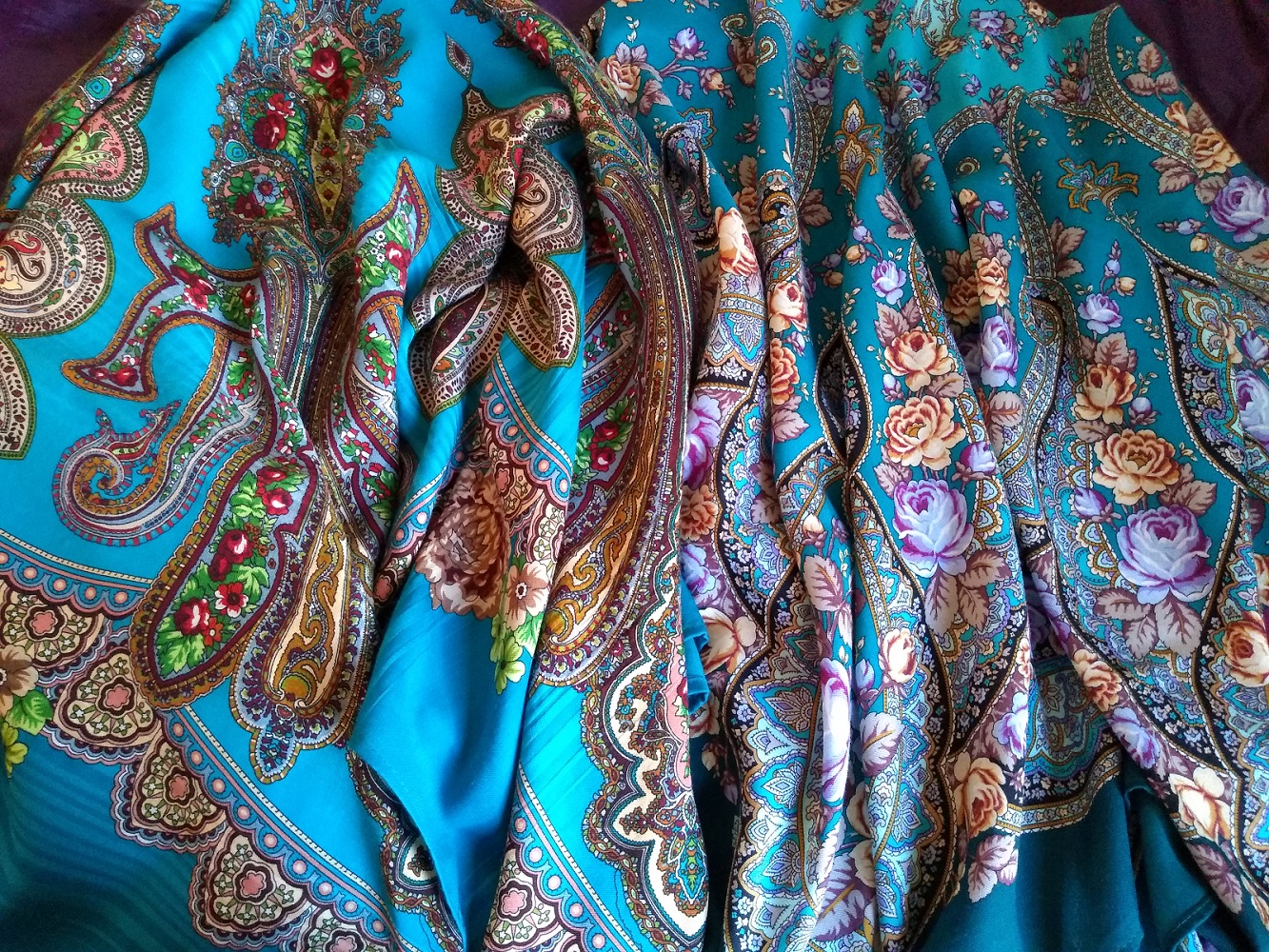 Наконец-то душа успокоилась бирюзой, хотя бы на время. Потому как купленный ещё на заре шалепомешательства плат Розовые дали-12 никак не носился. При всей моей любви к бирюзе.