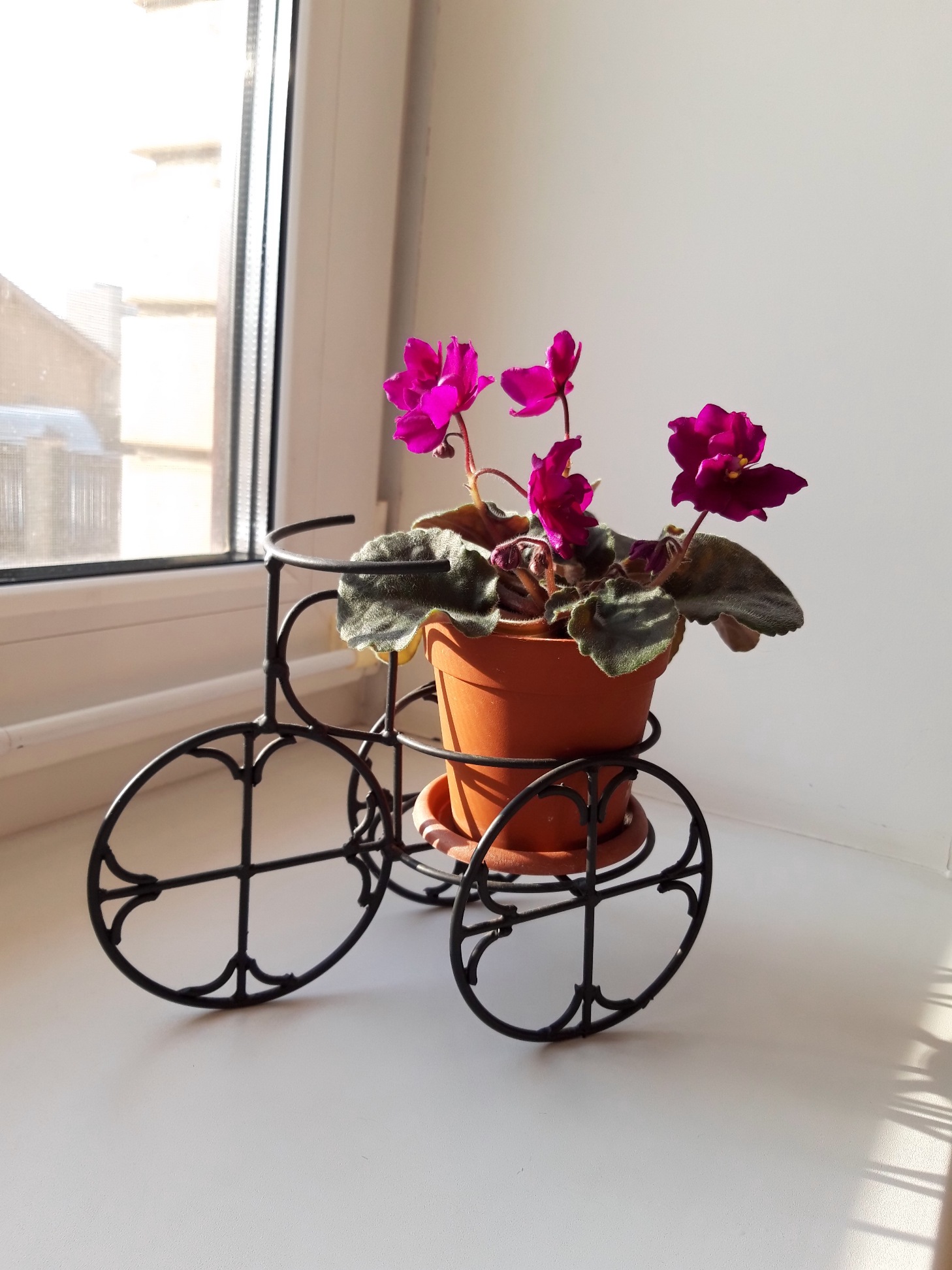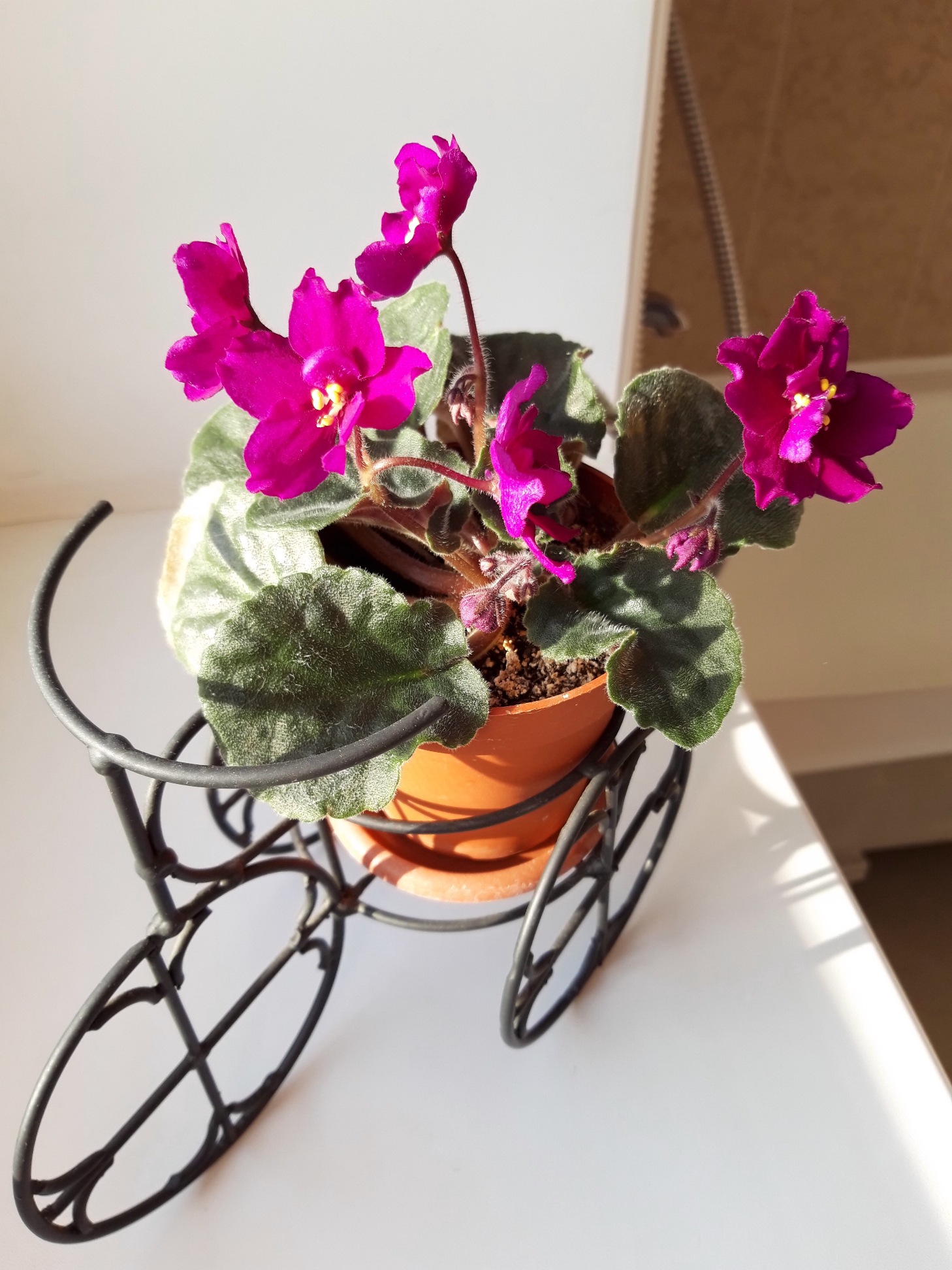 Симба же сразу ее не взлюбил: нет, он не сталкивал ее с подоконника, но регулярно прокусывал листья и обдирал цветы. Но я не стала убирать фиалку из ванной- она мне именно там нужна))) Решила, что если уберу- обратно точно уже не поставить. И началось у нас с Симбой ^Y Он дерет- я ругаю "она здесь была, и будет, и не трогай!". Фиалка стоически переносила нового соседа и даже цвела. Но выглядела ^V^