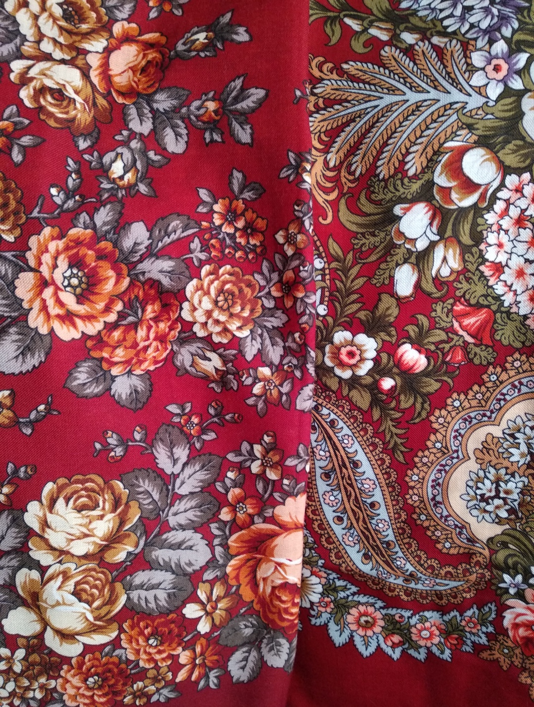 Кайма у обеих шалей чёрная. Тут Зеркальце близко к окошку лежало - высветлило его немного)