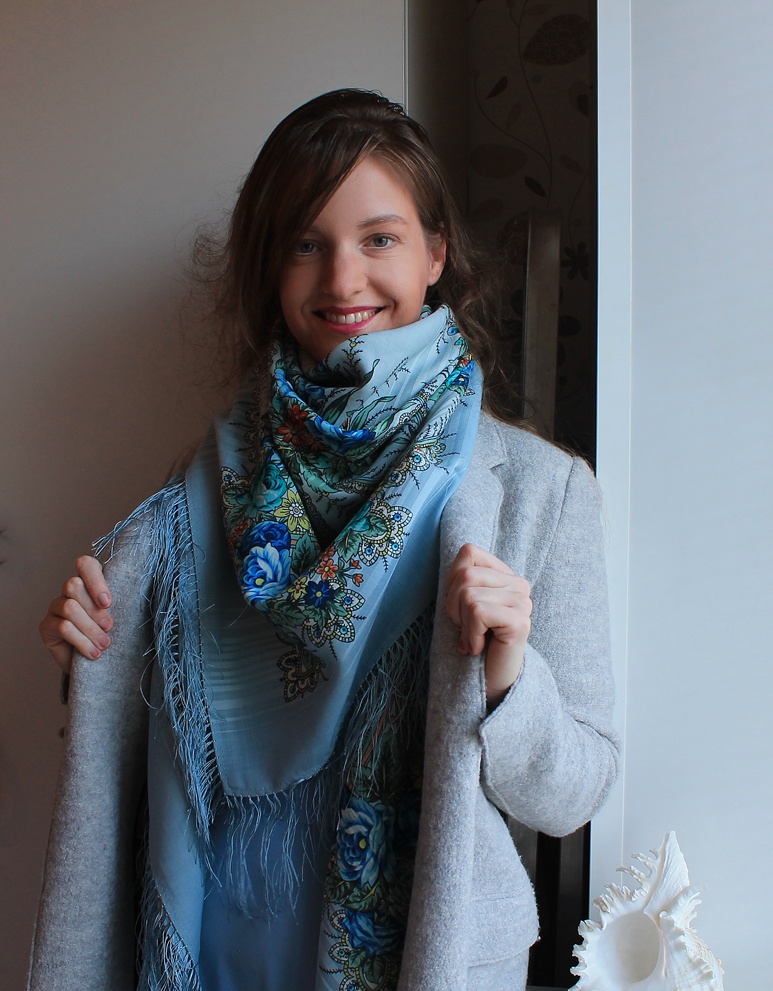 Демонстрируем ношение платков и шалей.