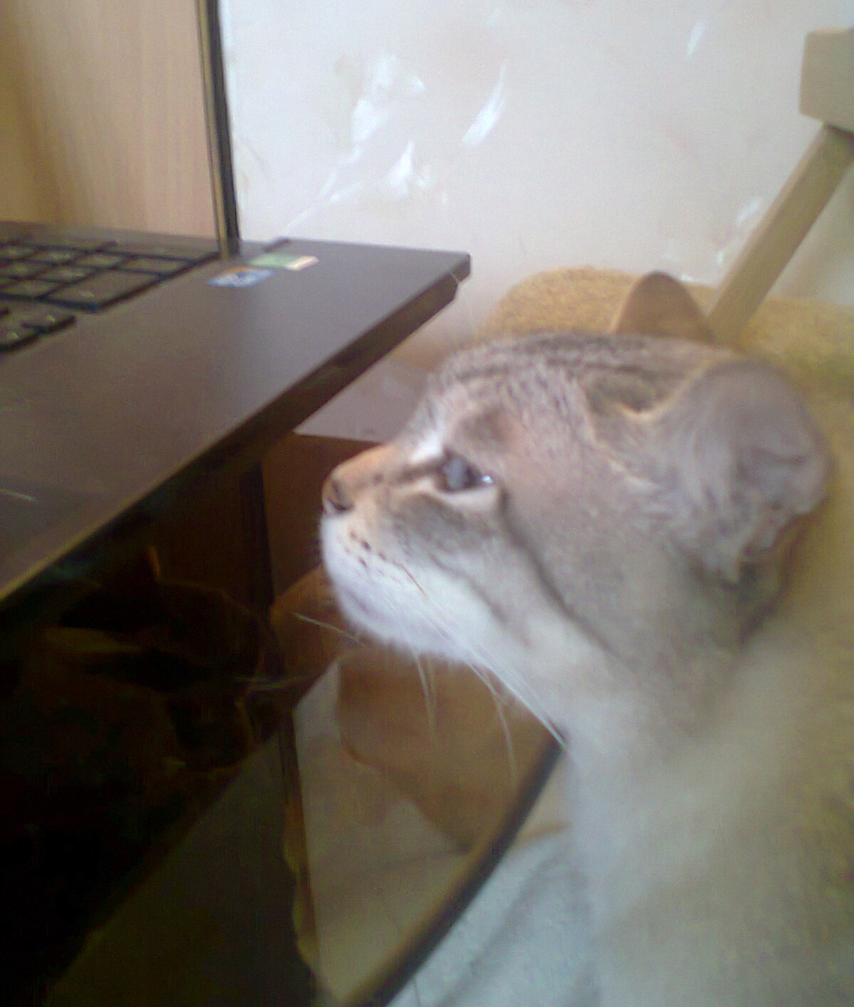 Тиша занял мое место, мордаху на столик положил и внимательно так на экран пялится)) Ванесса Прелестная малышка - пусть растет здоровенькой и умненькой