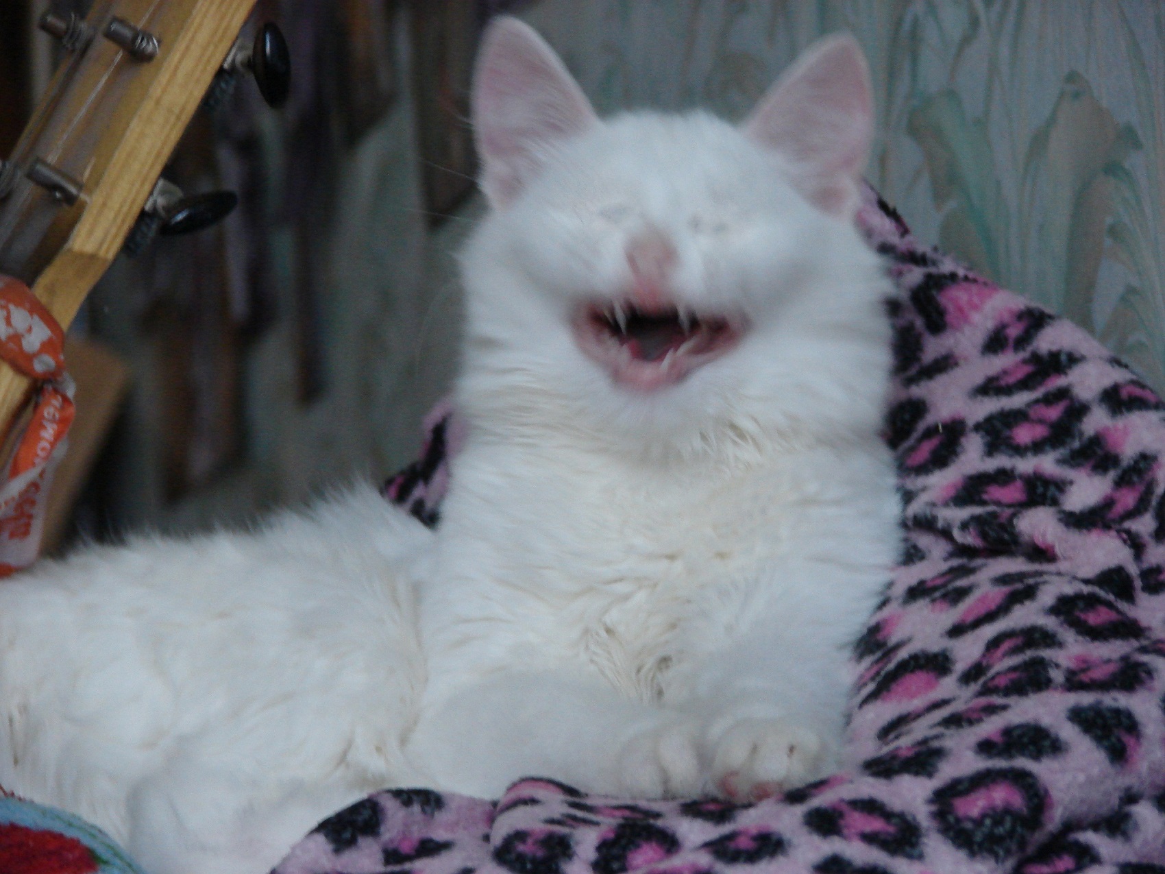 Ой не могу, как классно! Отлично пишете! Давно хочу белую котейку для полноты картины, к нашим черной и серой... Тут такая красотка! Или красавец? ::