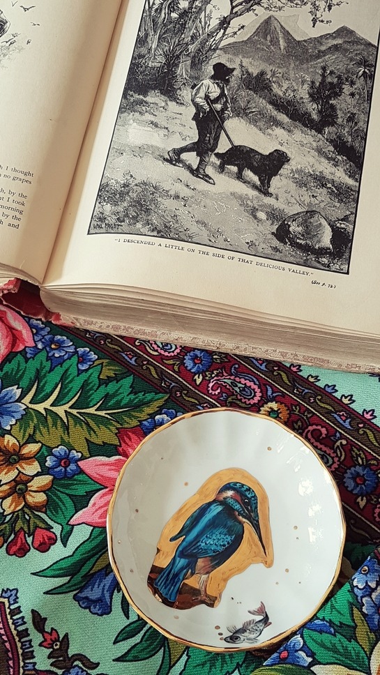 А кофейная пара - Кингфишер - совсем новая: ручная роспись современной мастерицы.