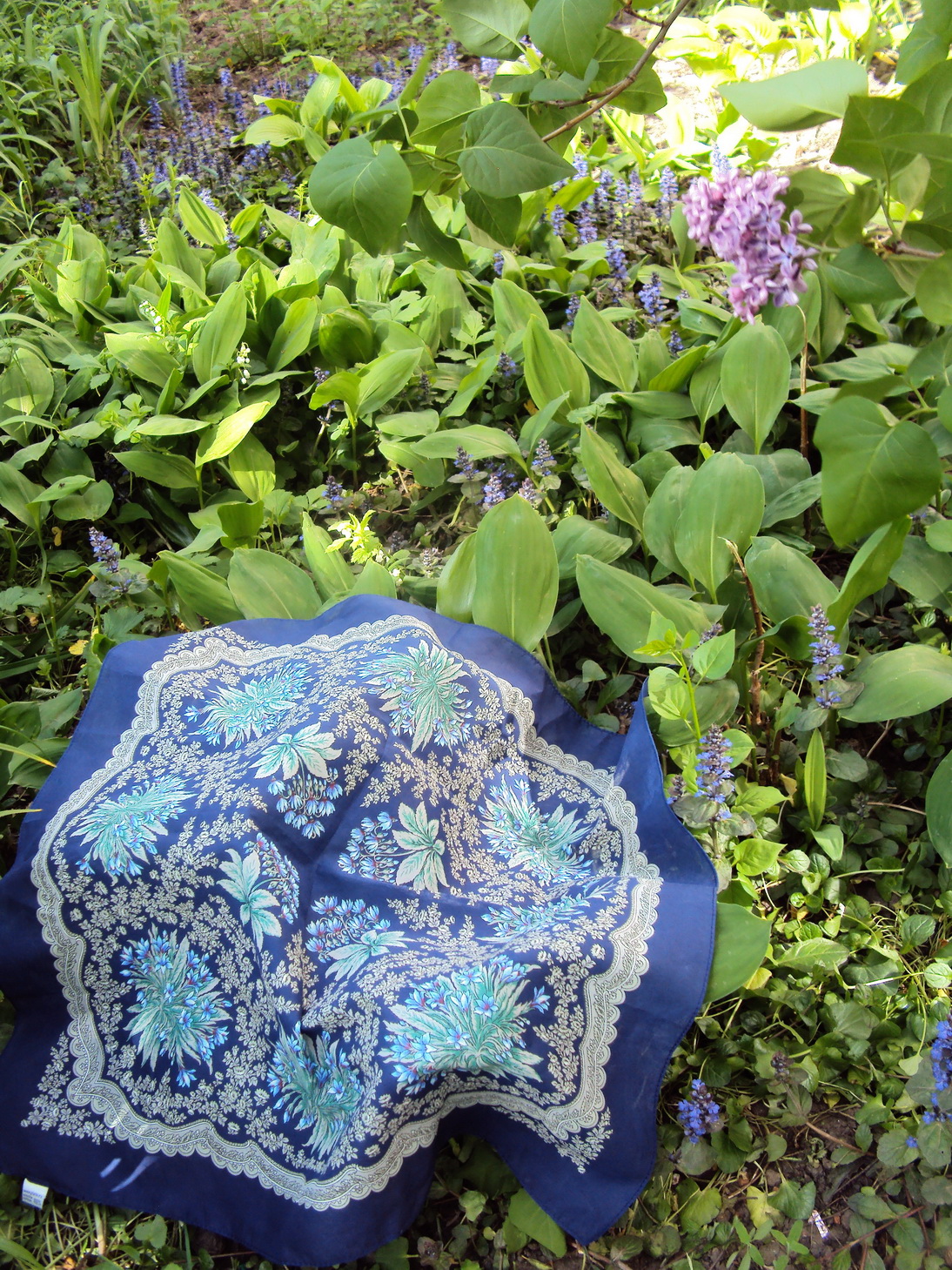 Но, вот посмотрела я еще раз фотографии Елеки, и поняла, что лес для Посадского-10, всё-таки подходит именно весенний! Дело в том, что цвета шали так гармонично подобраны, так эффектно дополняют друг друга, что, если прищурится, или бегло взглянуть на шаль, то они образуют над шалью салатовую дымку. И эта дымка характерна для весенней листвы в прозрачном воздухе. Потом состояние листвы станет более определённным, дымка исчезнет. (такую же дымку я вижу над синим Посадским, только она там серебряная. Никакой дымки, увы нет над 7-ым Посадским. В моём глазу цвета 7-го Посадского распадаются на отдельные составляющие)