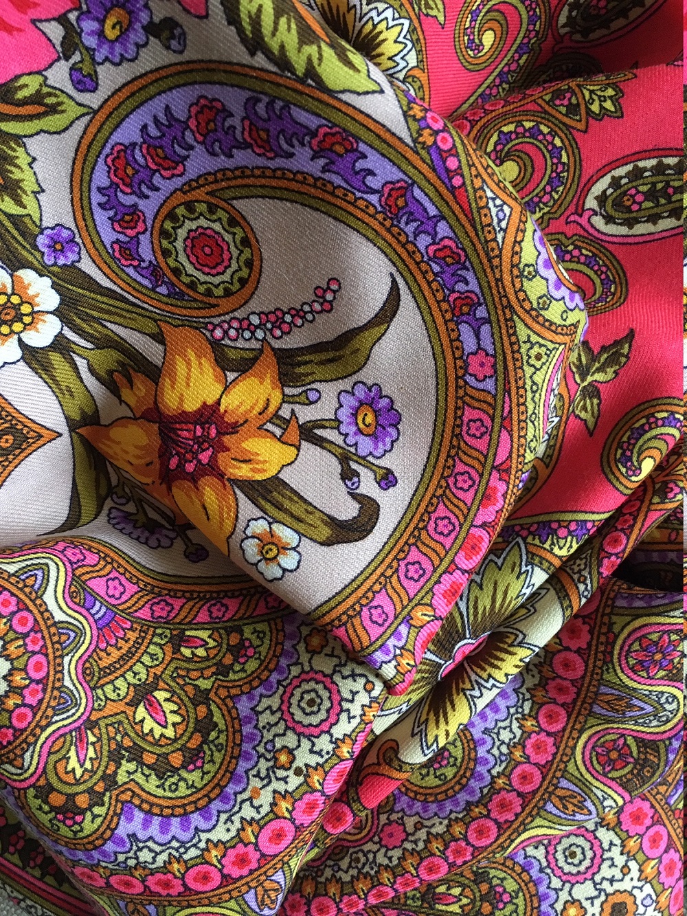 Это тоже весна. И купила этой весной. Ассоциации с радостным настроением и цветущим яблоневым садом, не по колористике, а по тому, как сочетание цветов и рисунка отзывается в душе.