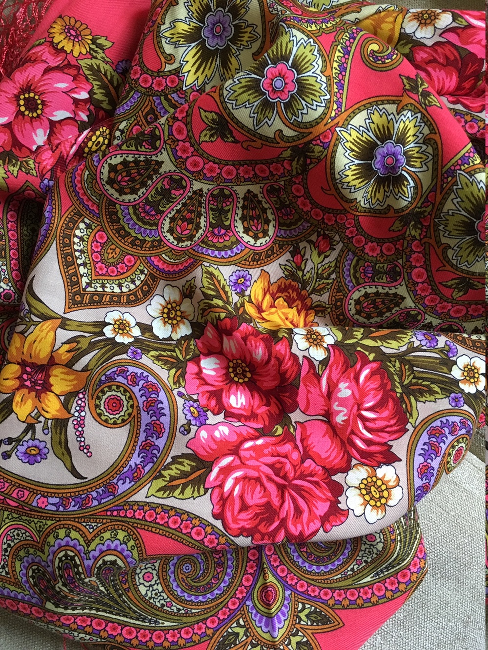 Это тоже весна. И купила этой весной. Ассоциации с радостным настроением и цветущим яблоневым садом, не по колористике, а по тому, как сочетание цветов и рисунка отзывается в душе.