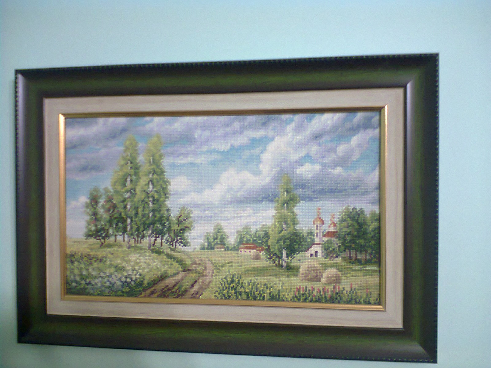 А я порой вышивкой балуюсь - это я племяннице подушку и картину вышила.