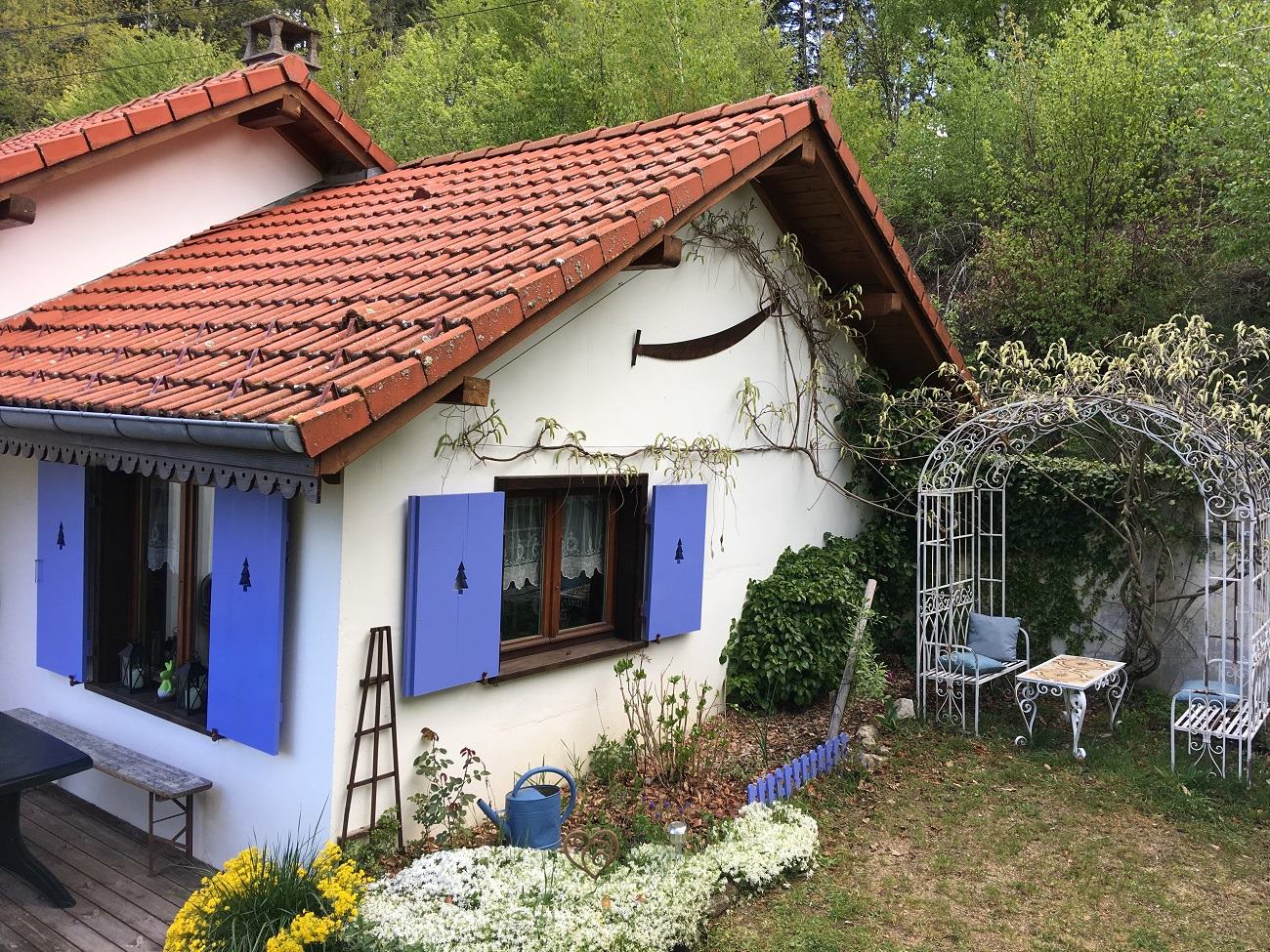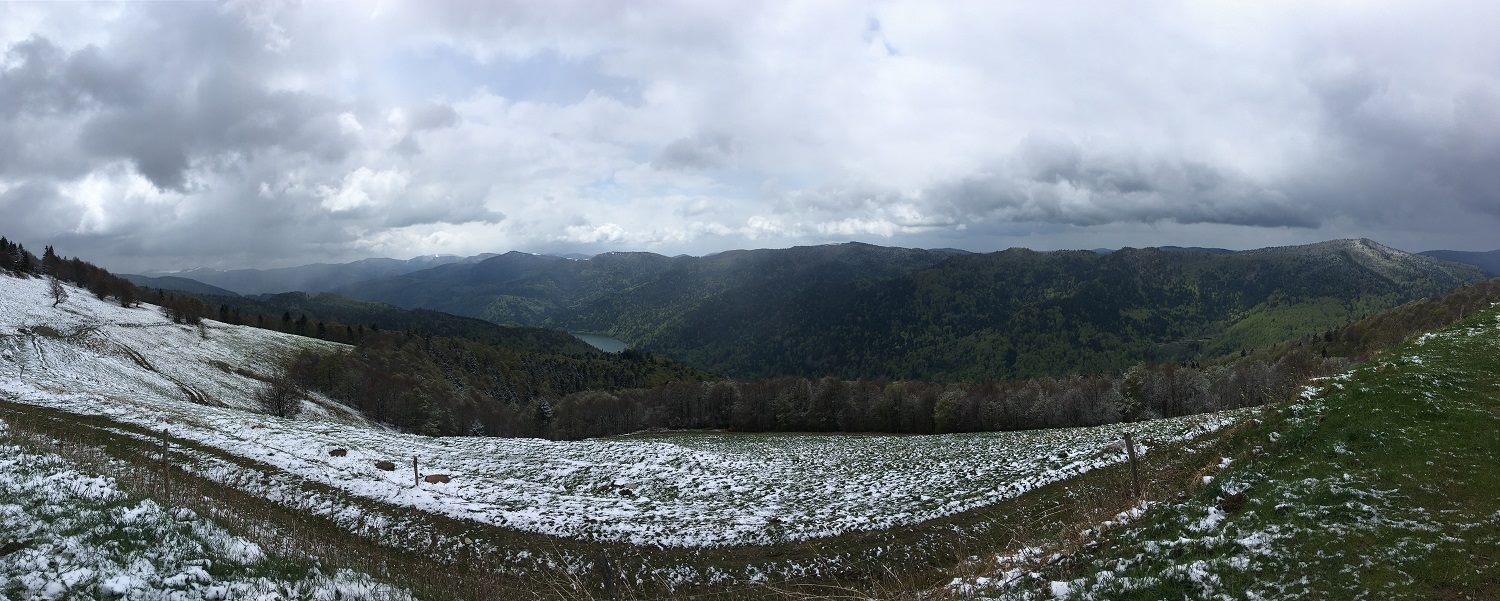 Путешествовали мы по Верхним Вогезам, среди самых высоких вершин массива, жили на хуторе Нёуз (Neuhouse) в нескольких км от Гран-Баллон – наивысшей точки Вогезов (1424 м). Хутор из нескольких шале находится на выселках коммуны Гольдбах-Альтенбах, в сердце большого природного парка Ballons des Vosges, на лесистом горном склоне на высоте около 800 м. Хозяйский участок – последний, прямо среди векового леса.