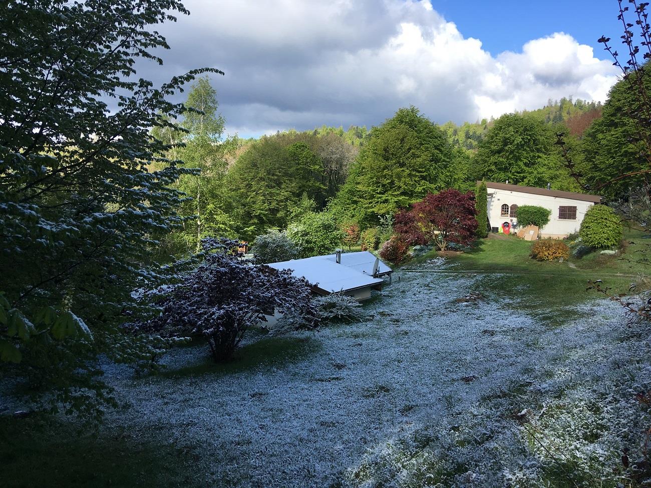 Погодные причуды этого Первомая – резко похолодало и выпал снег, хотя неделю назад здесь ходили в майках. Пришлось доставать уже убранную горнолыжку, платки и шали тоже оказались очень кстати, хотя из-за перевеса пришлось ограничиться минимумом (Желанная-1 и Письмо любимой-9), да у дочери кое-что прихватила.