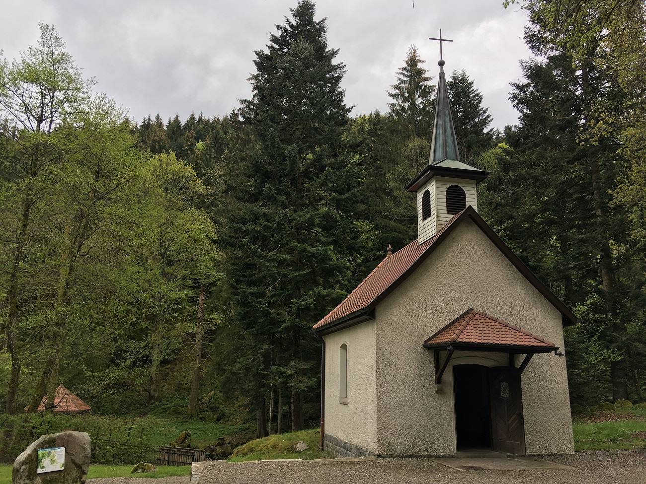 Прямо здесь, у дороги через перевал Одерен, соединяющей Эльзас и Лотарингию, среди леса рядом с каскадом Saint-Nicolas стоит небольшая часовня Св. Николая.