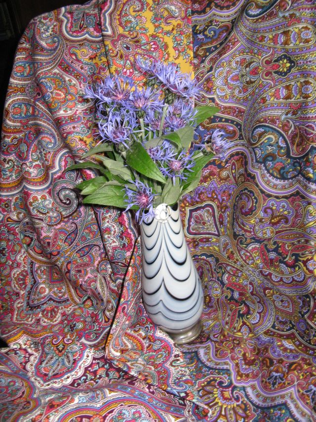 И почему-то Богатые невестушки пришли на ум. Есть в них узорчики с синевой, бирюзой и зеленцой.