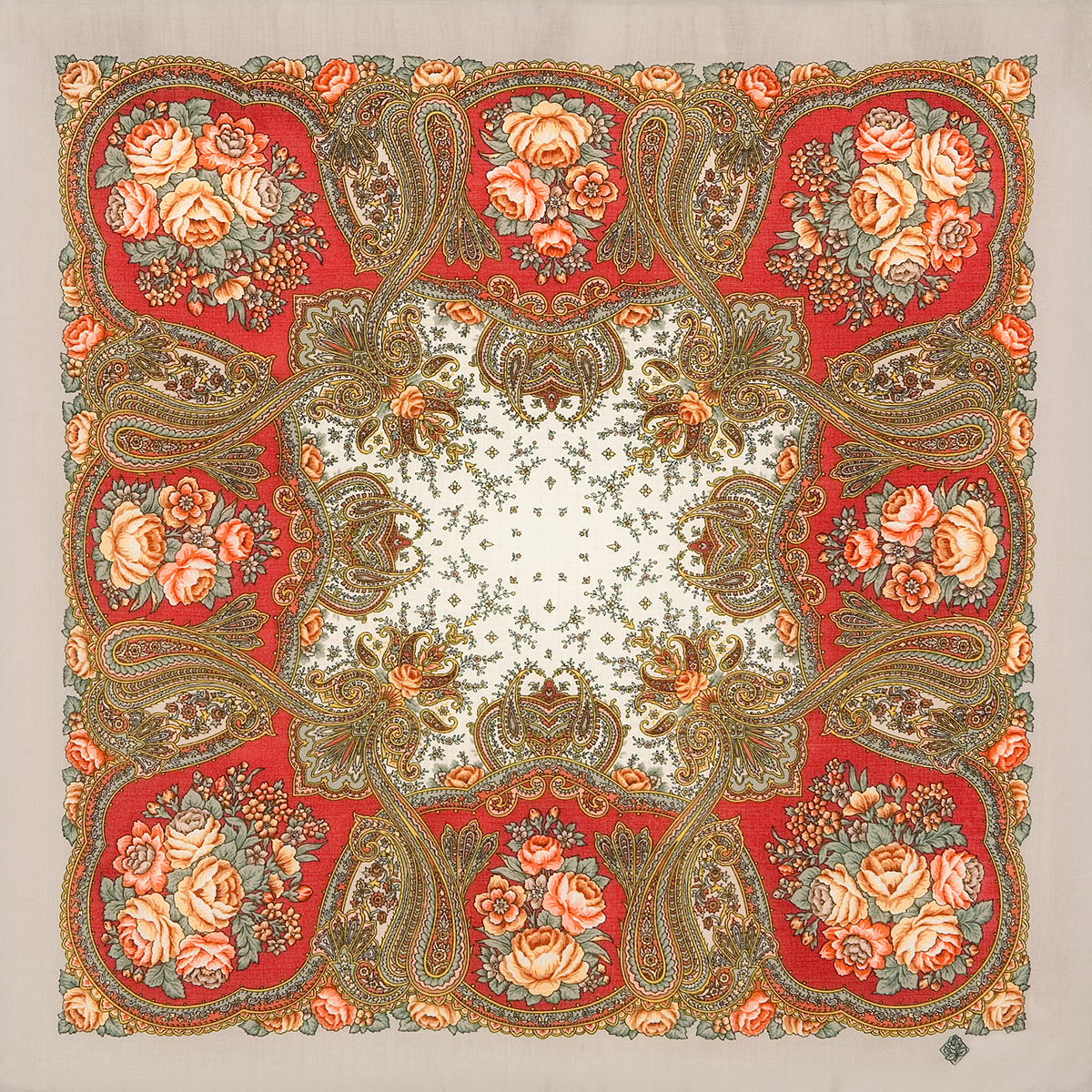 Шаль, напечатанная на уплотнённой шерстяной ткани, 148х148. Выпуск 2013г.